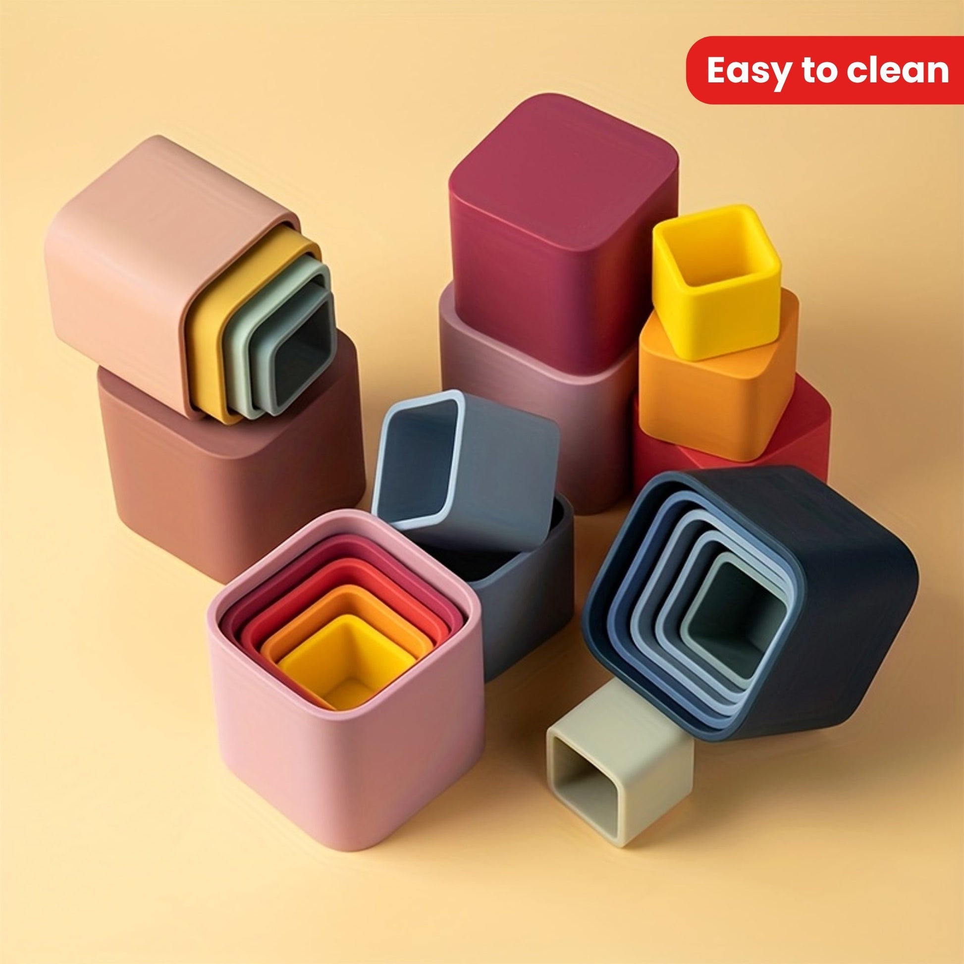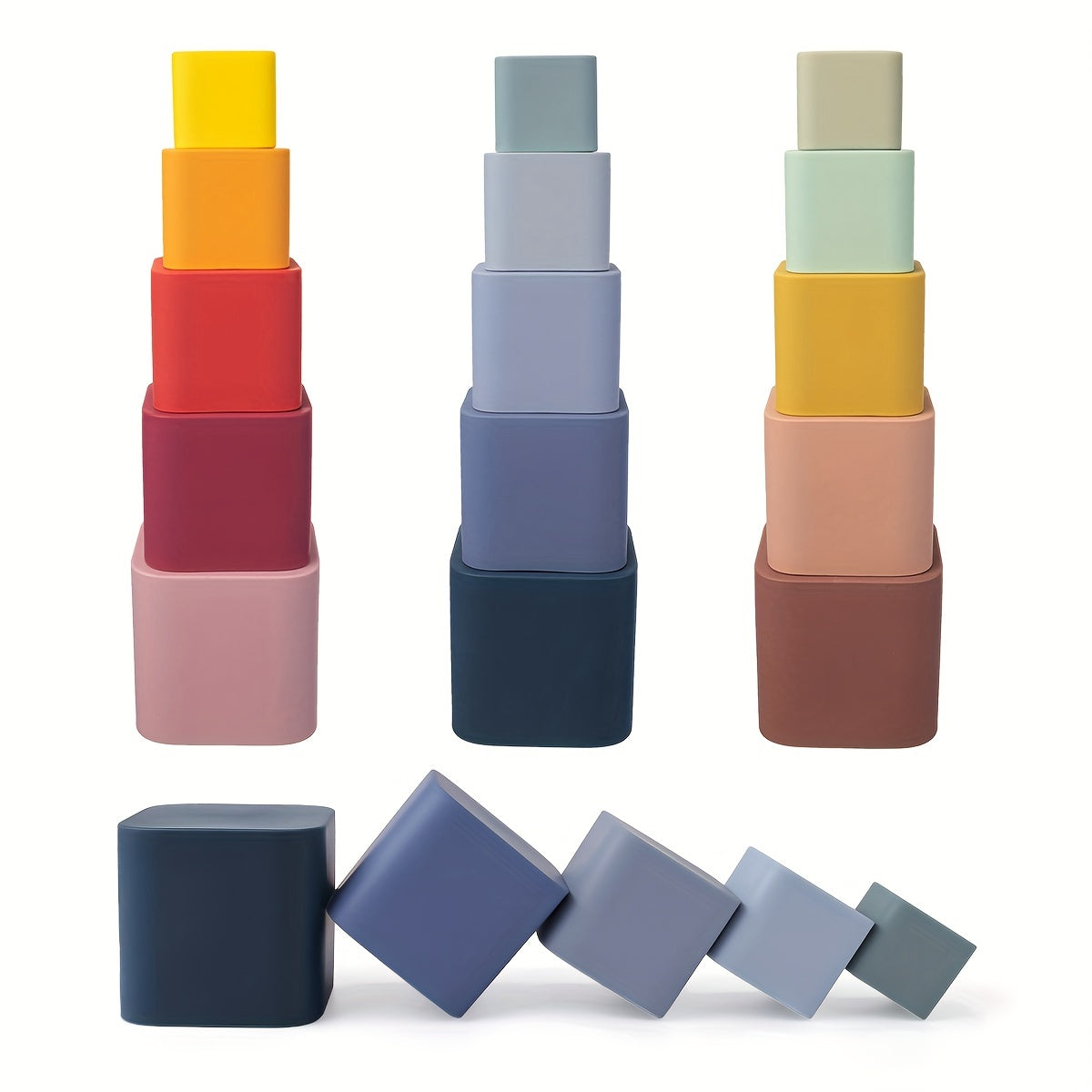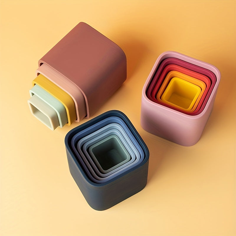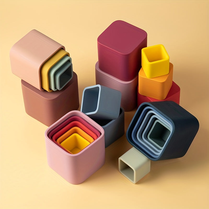 Baby Stacking Toys 5-Piece Silicone Nesting Cups for Early Educational Play BPA Free Safe for Babies 6 Months Plus