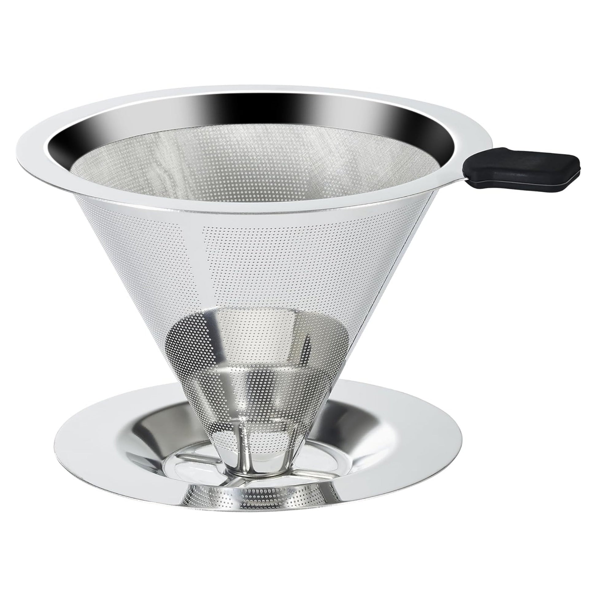 Single Cup Stainless Steel Pour Over Coffee Filter Double Mesh Cone Strainer