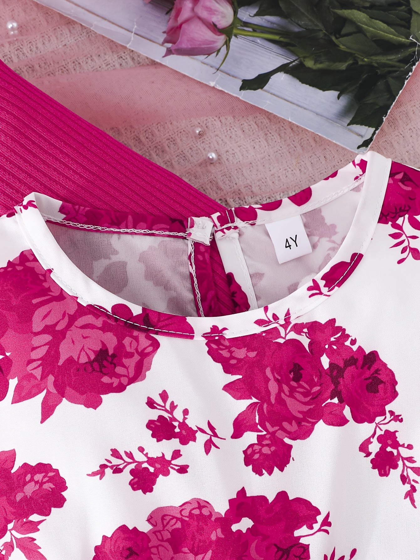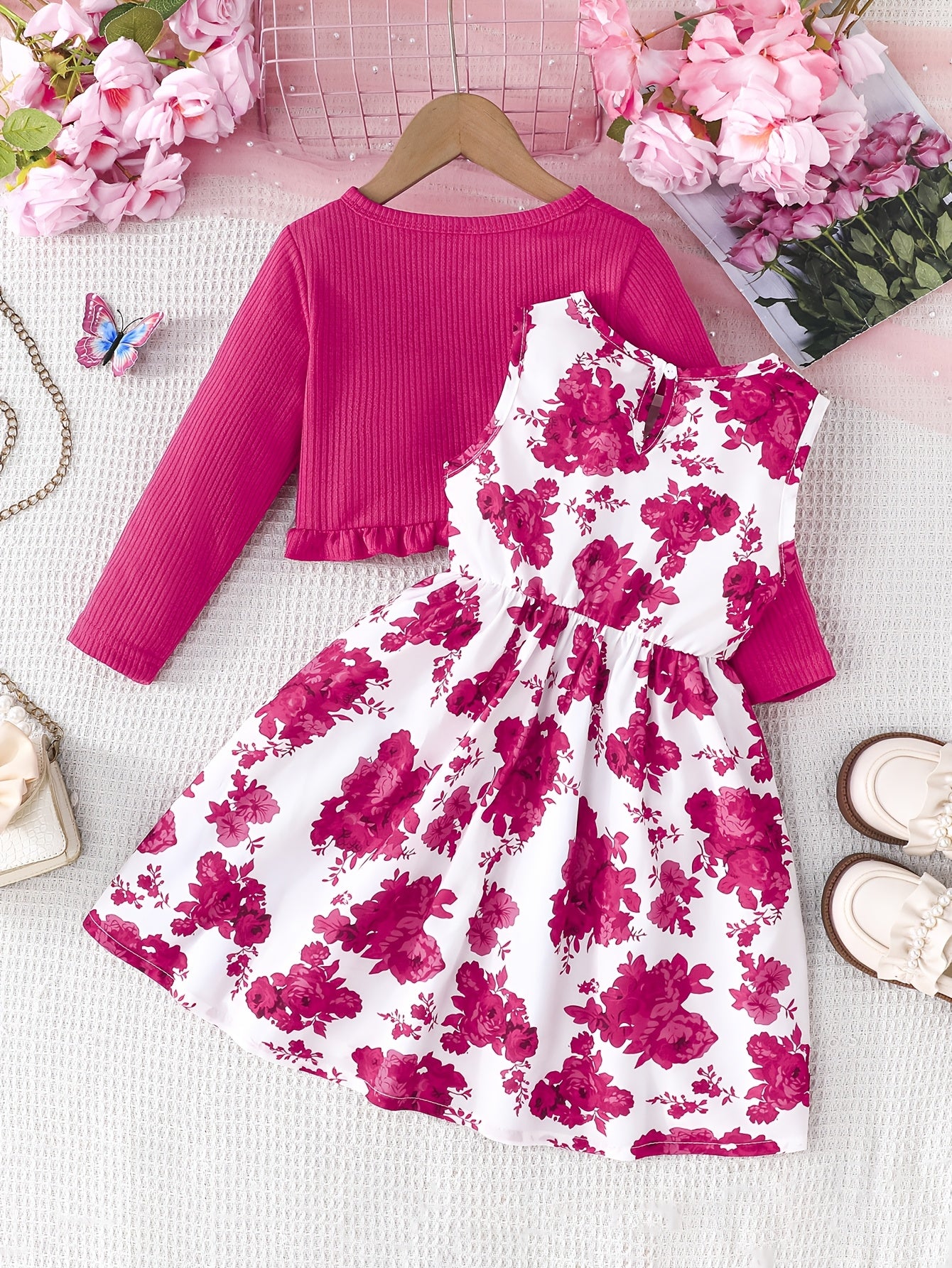 Girls' Floral Sleeveless A-Line Dress Set with Cardigan Polyester Blend Spring Fall Casual