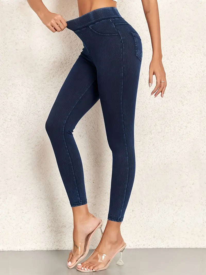 Women's High Waist Slimming Jeggings with Pockets Solid Color Mid Support Stretch