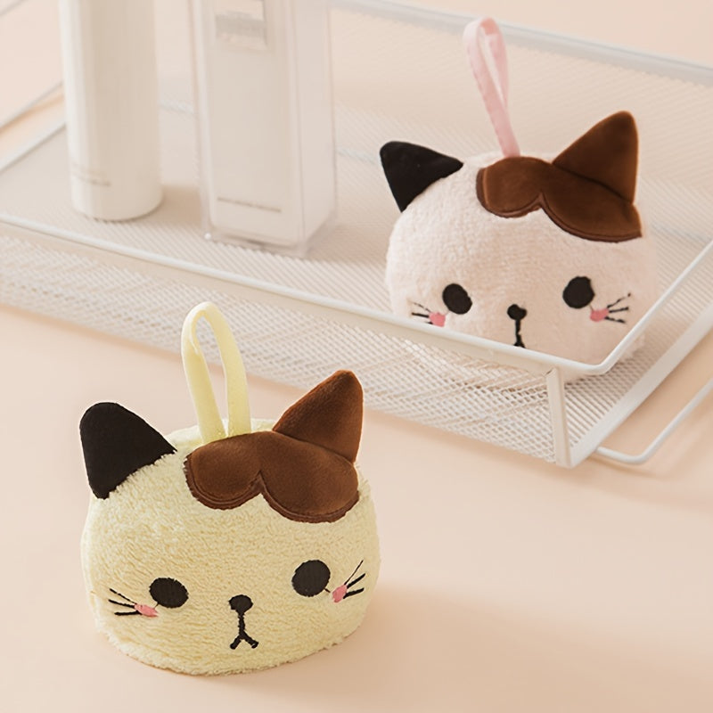Coral Fleece Hand Towel Embroidered Cat Design Absorbent Kitchen Bathroom Use