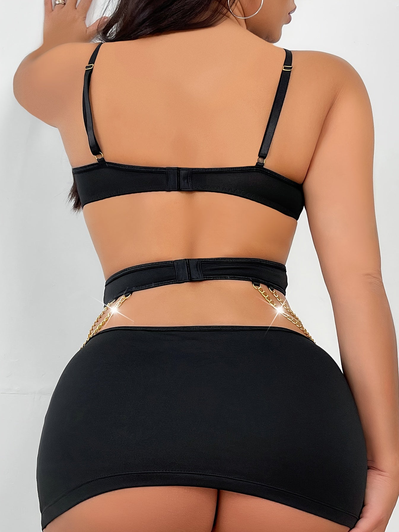 Women’s Lace Chain-Link Lingerie Set with Backless Dress and Thong