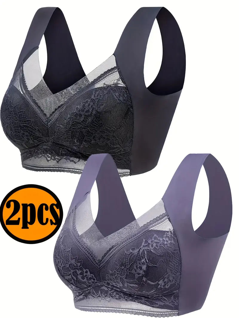 Women's Floral Lace Wireless Tank Bra Full Coverage Push Up Lingerie