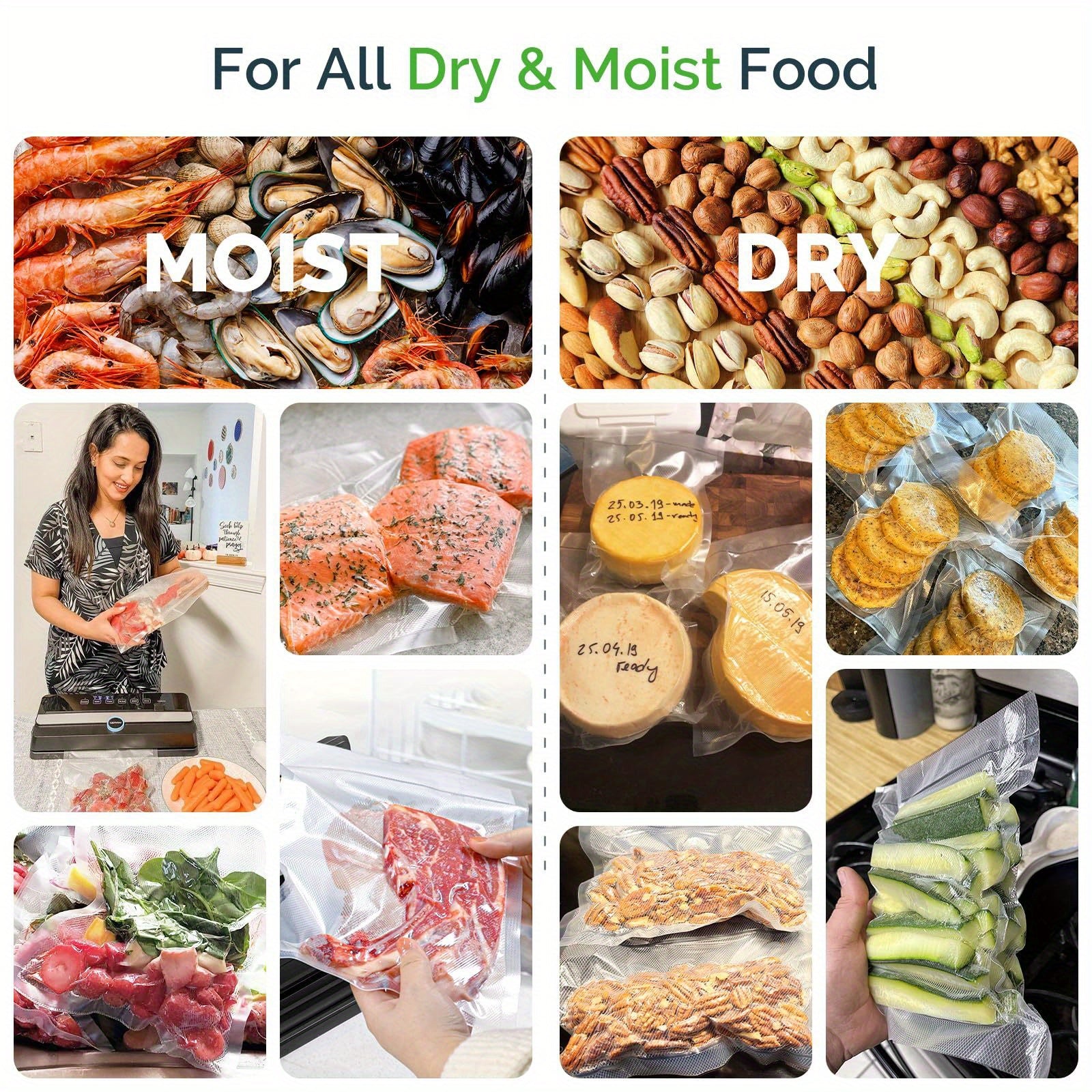 Vacuum Seal Bags for Sous Vide Food Storage PE+PA Material 8x12 Inches