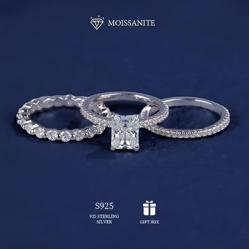 Sterling Silver Stacking Ring with Moissanite 2-3 Carats Engagement Band Gift Box
