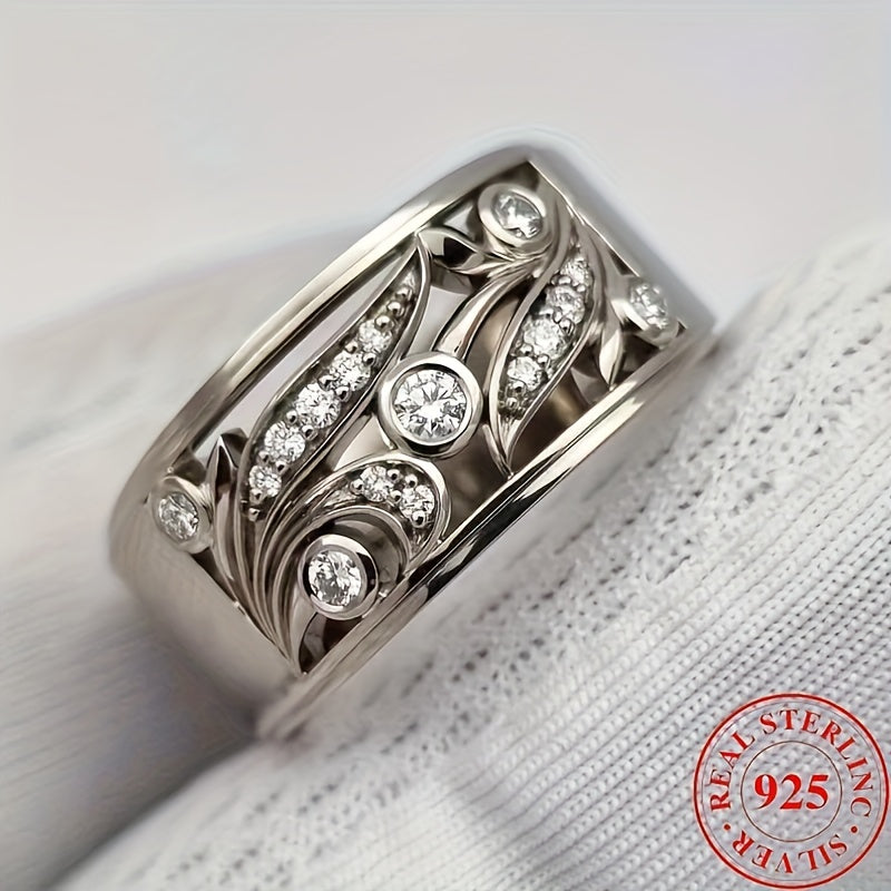 Sterling Silver Ring with Cubic Zirconia Stones for Engagement and Wedding