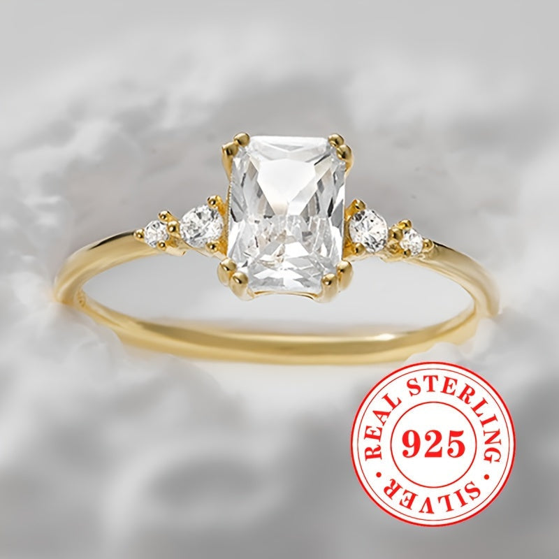 Women’s Sterling Silver Engagement Ring with Square Zirconia for Weddings and Anniversaries