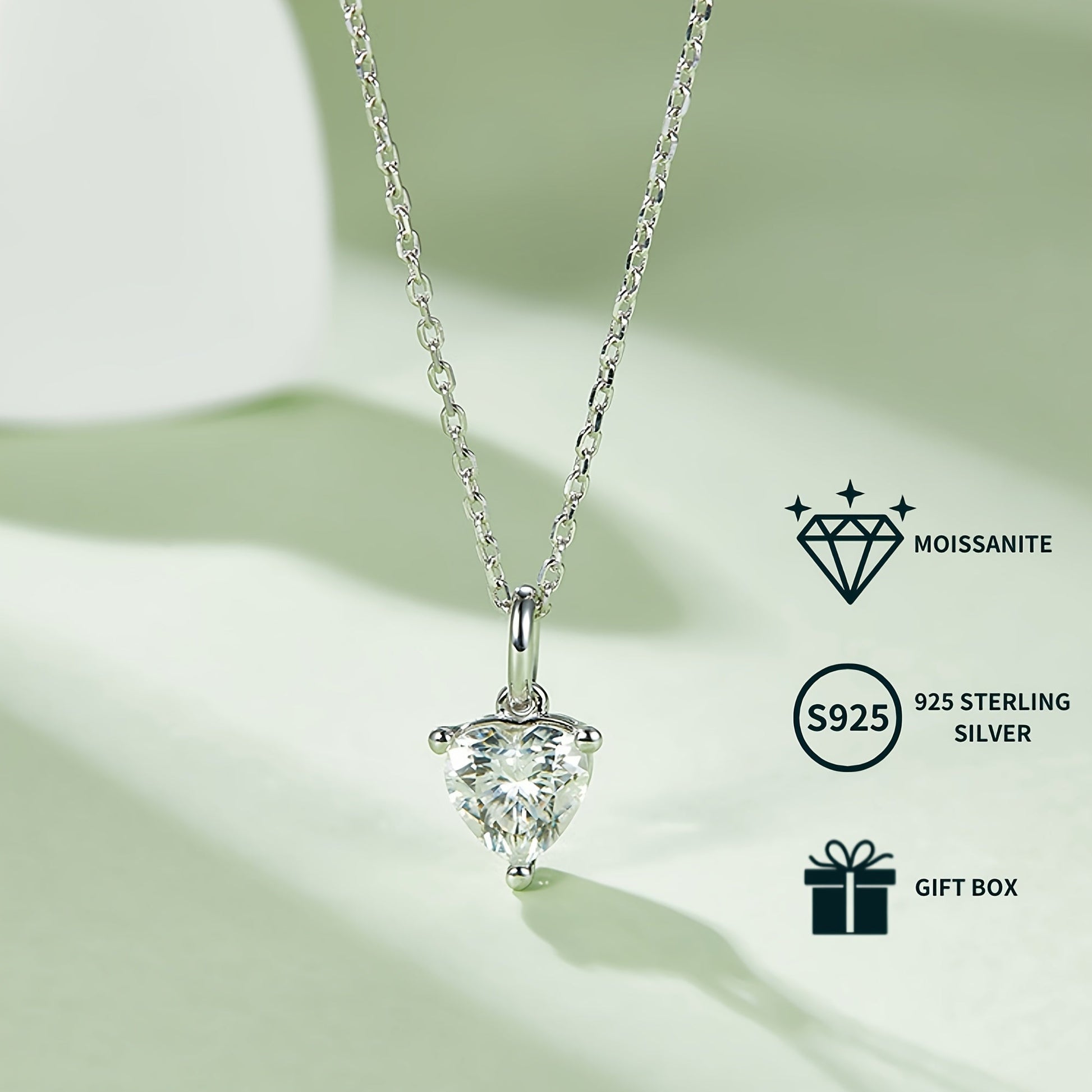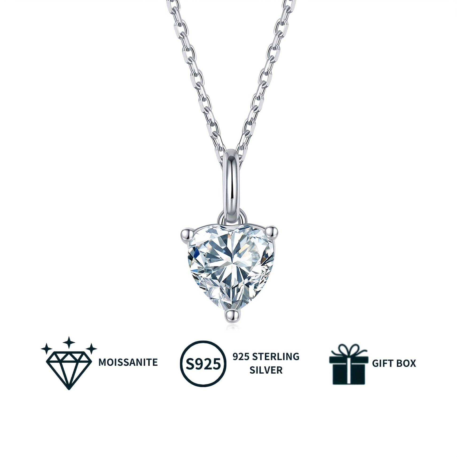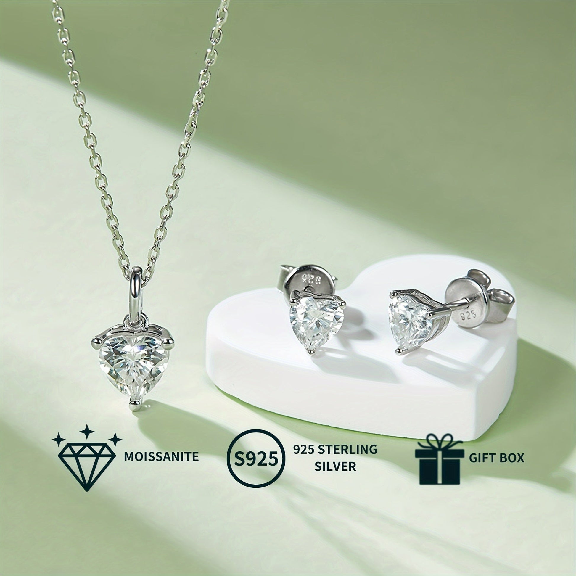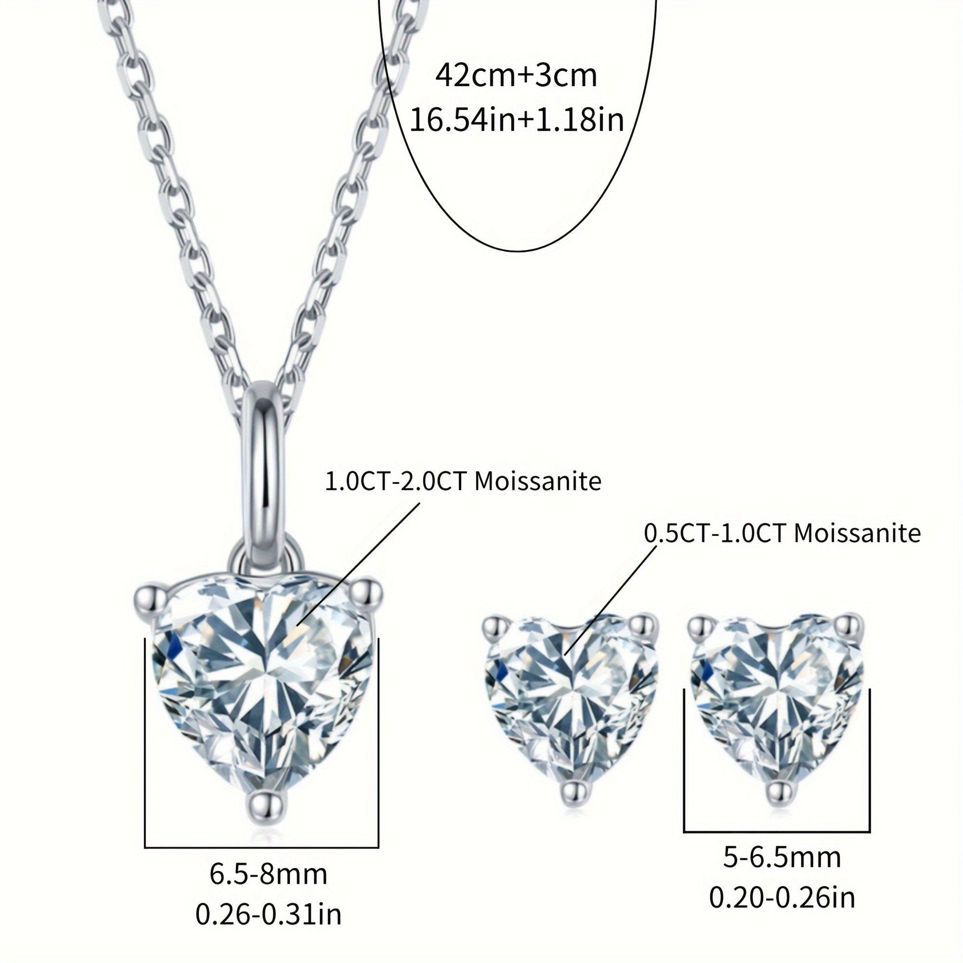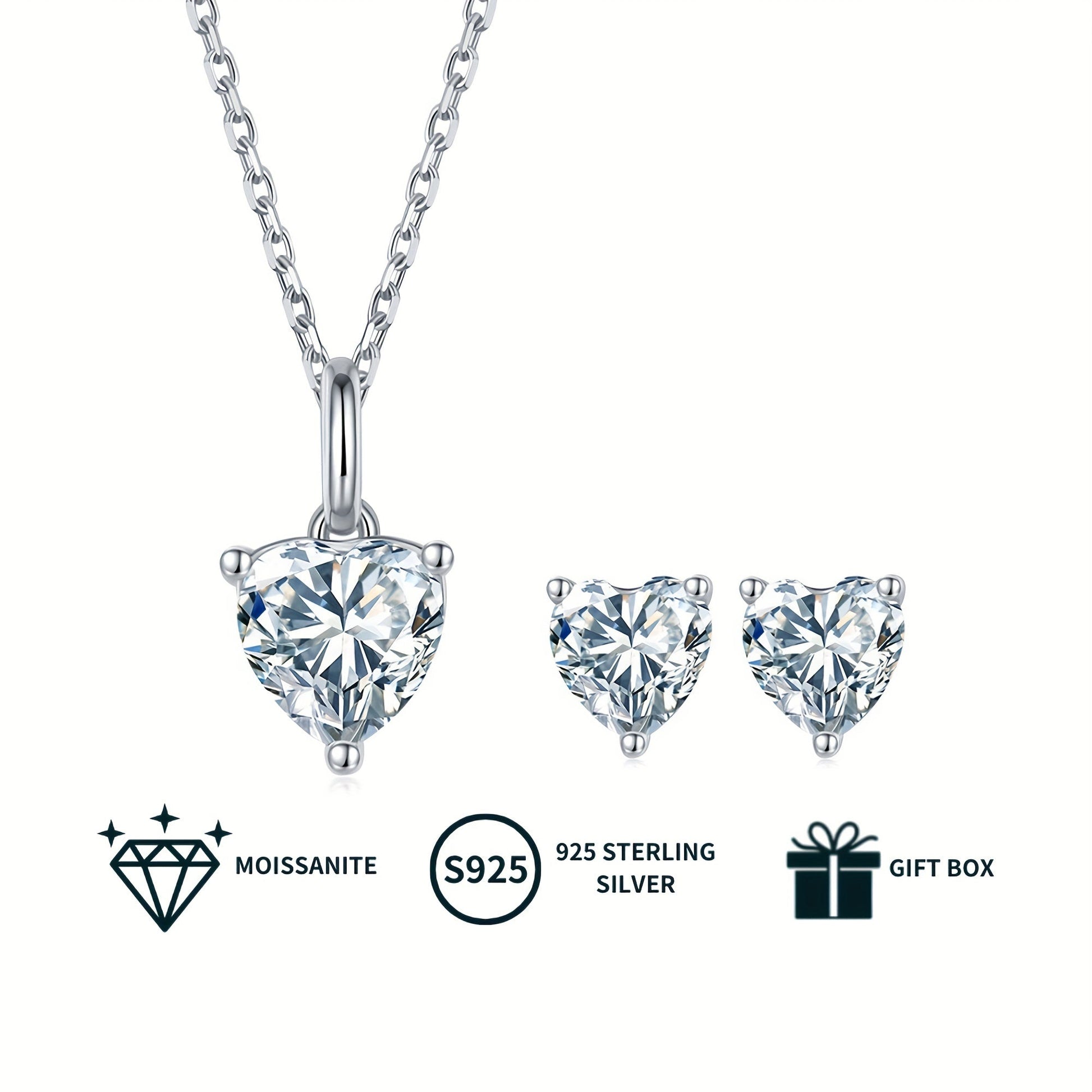 Heart-Shaped Moissanite Jewelry Set Pendant Necklace and Stud Earrings White Gold Plated Silver Gift for Her