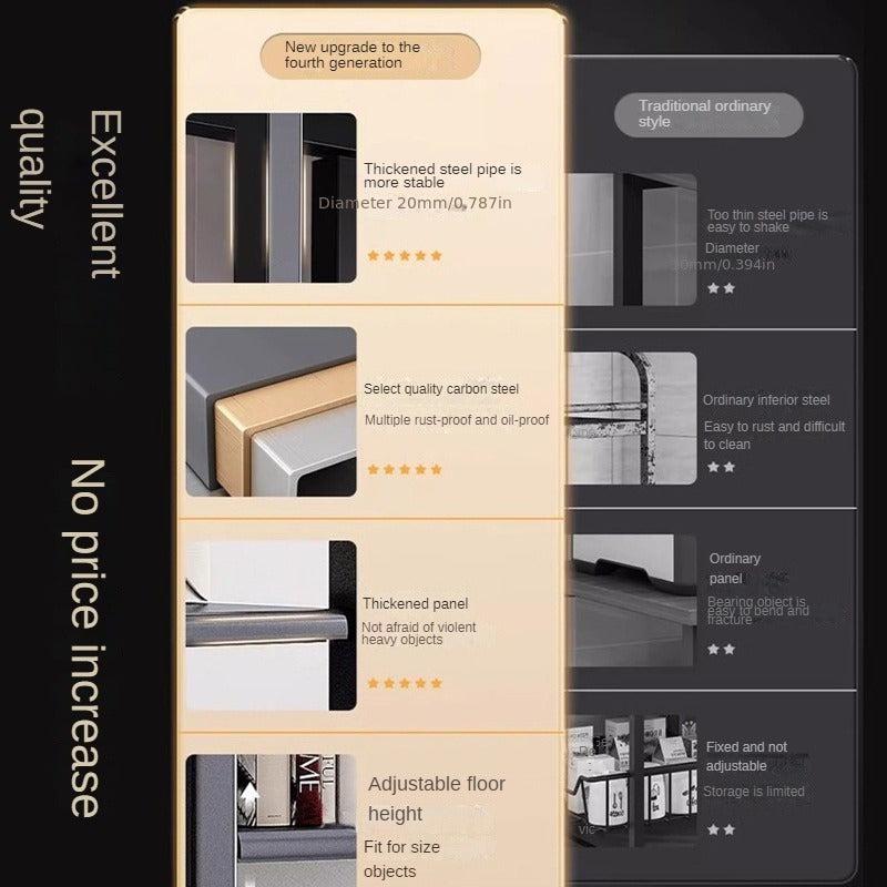 Sturdy Steel Kitchen Storage Rack with Adjustable Stabilizer Multi-Level Shelving