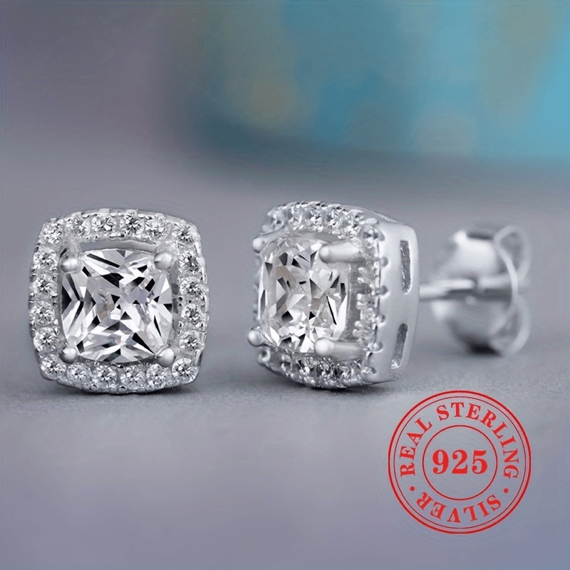 Sterling Silver Stud Earrings for Women Cubic Zirconia Round Square Jewelry