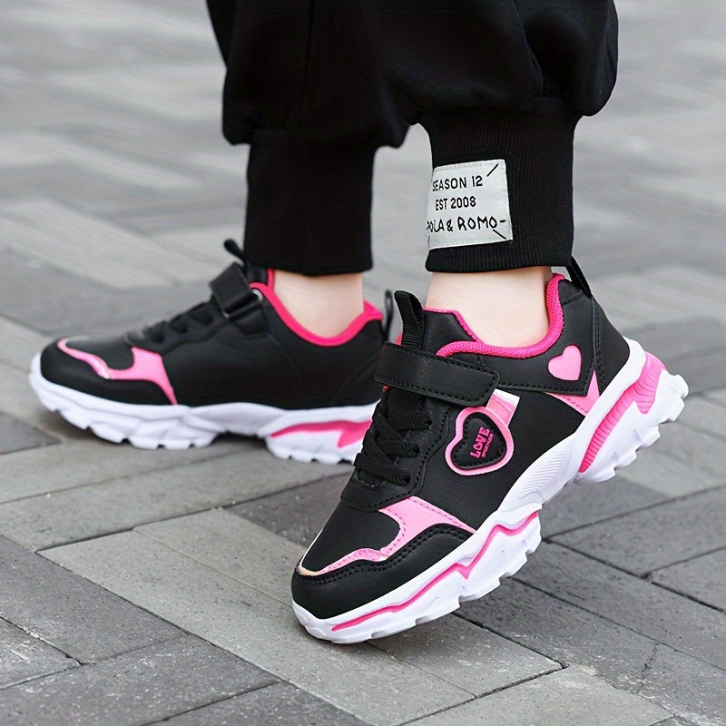 Girls Running Shoes Black and Pink Lightweight Glow-in-the-Dark Hook-and-Loop Sneakers