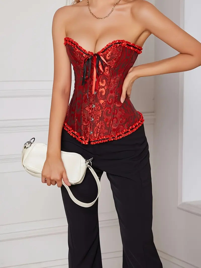 Black Lace-Up Corset Top for Tummy Control Waist Cinching Off-Shoulder Bridal Court Style Polyester Elastane
