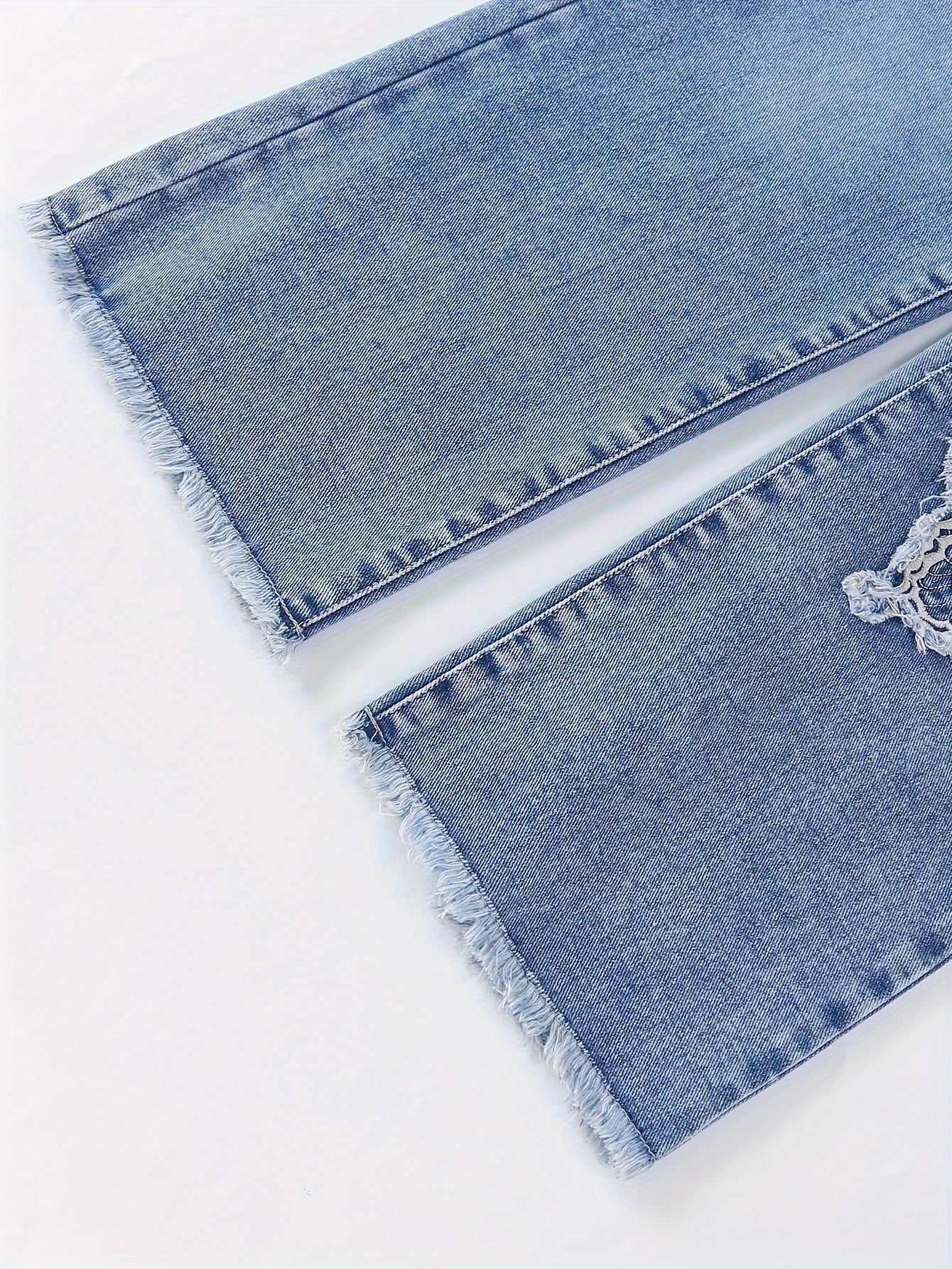 Girls Straight Leg Denim Jeans with Butterfly Embroidery Elastic Waist Casual Streetwear