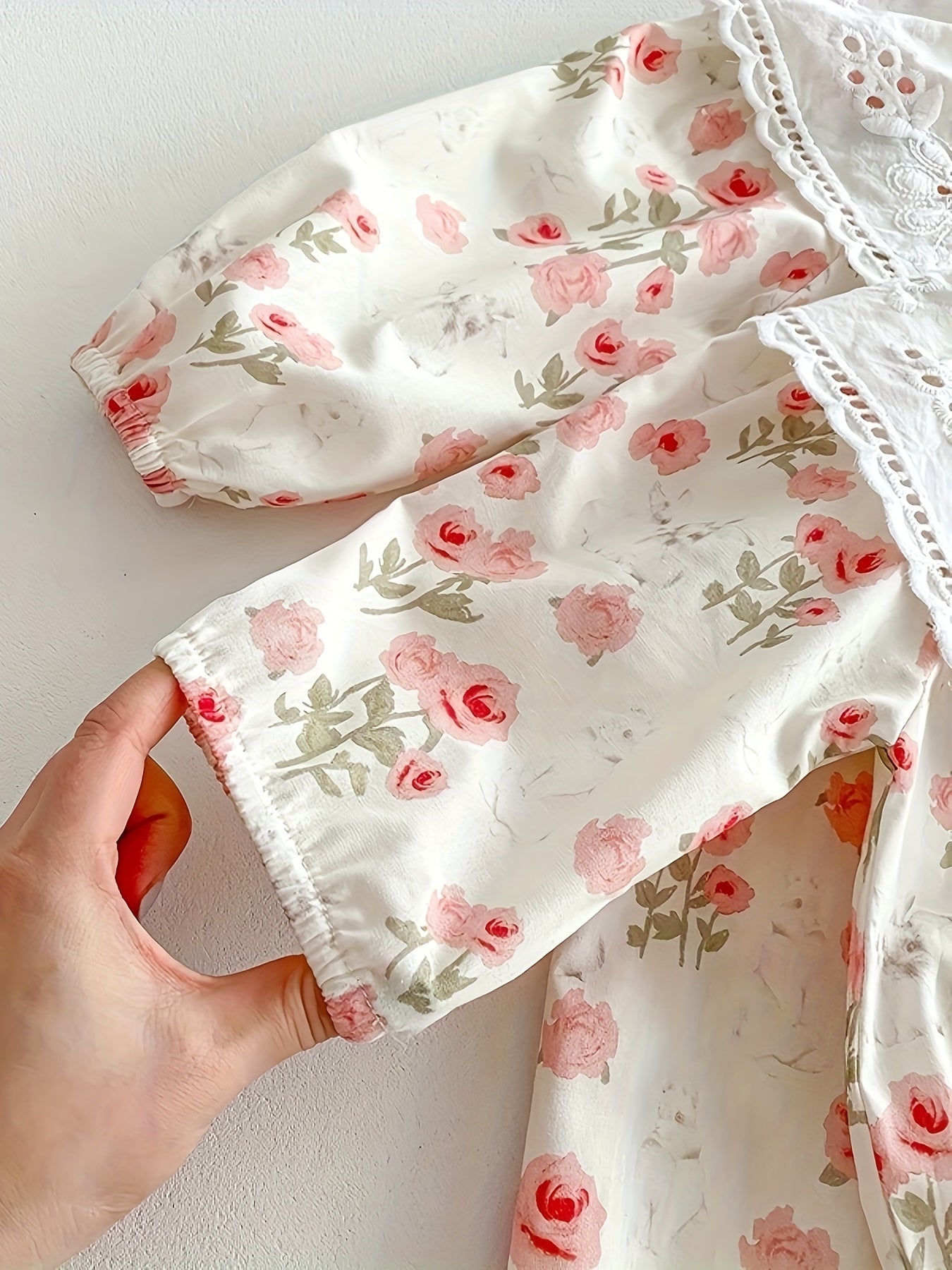 Girls Floral Cotton Long-Sleeve Dress for Spring and Fall