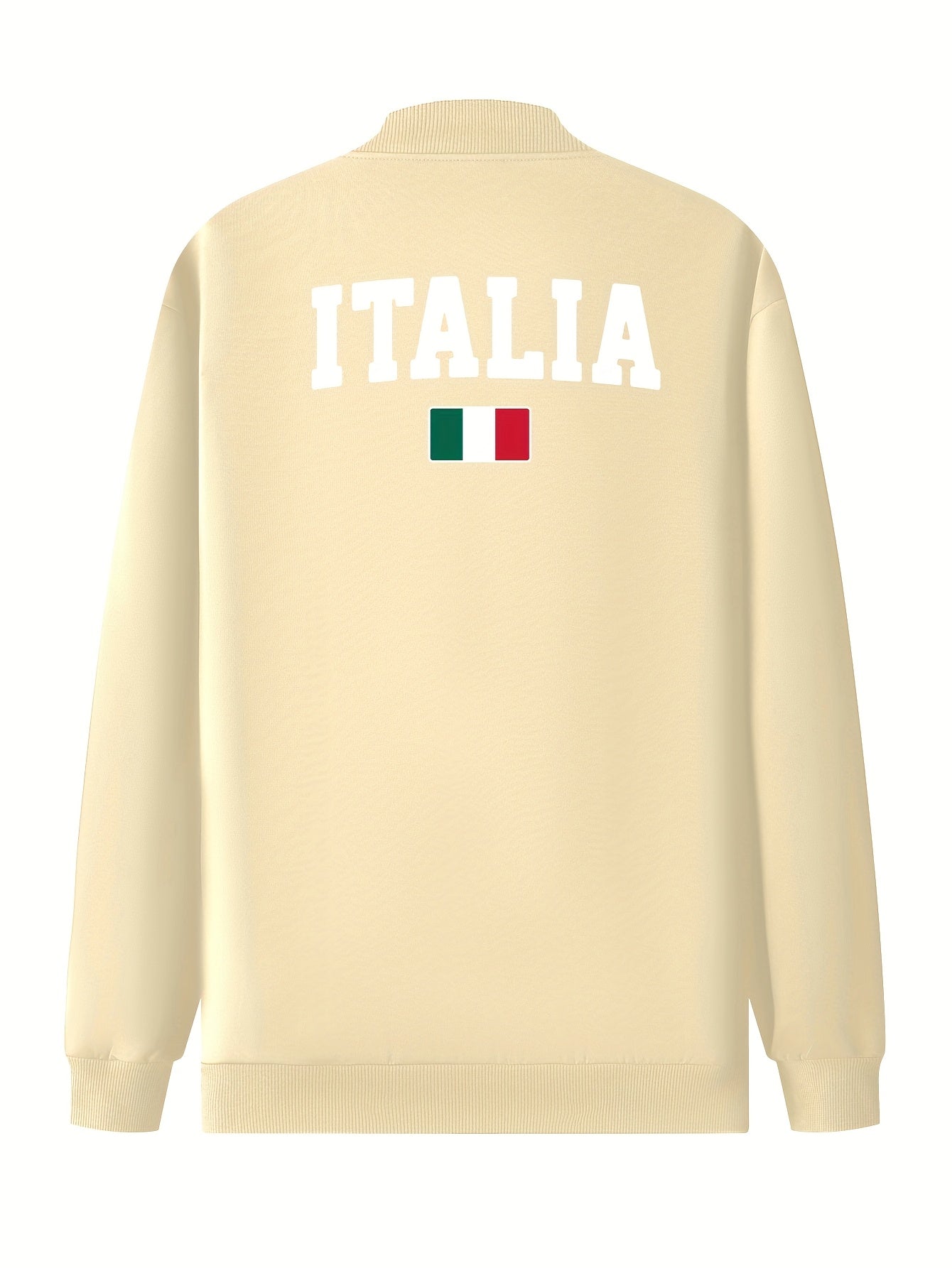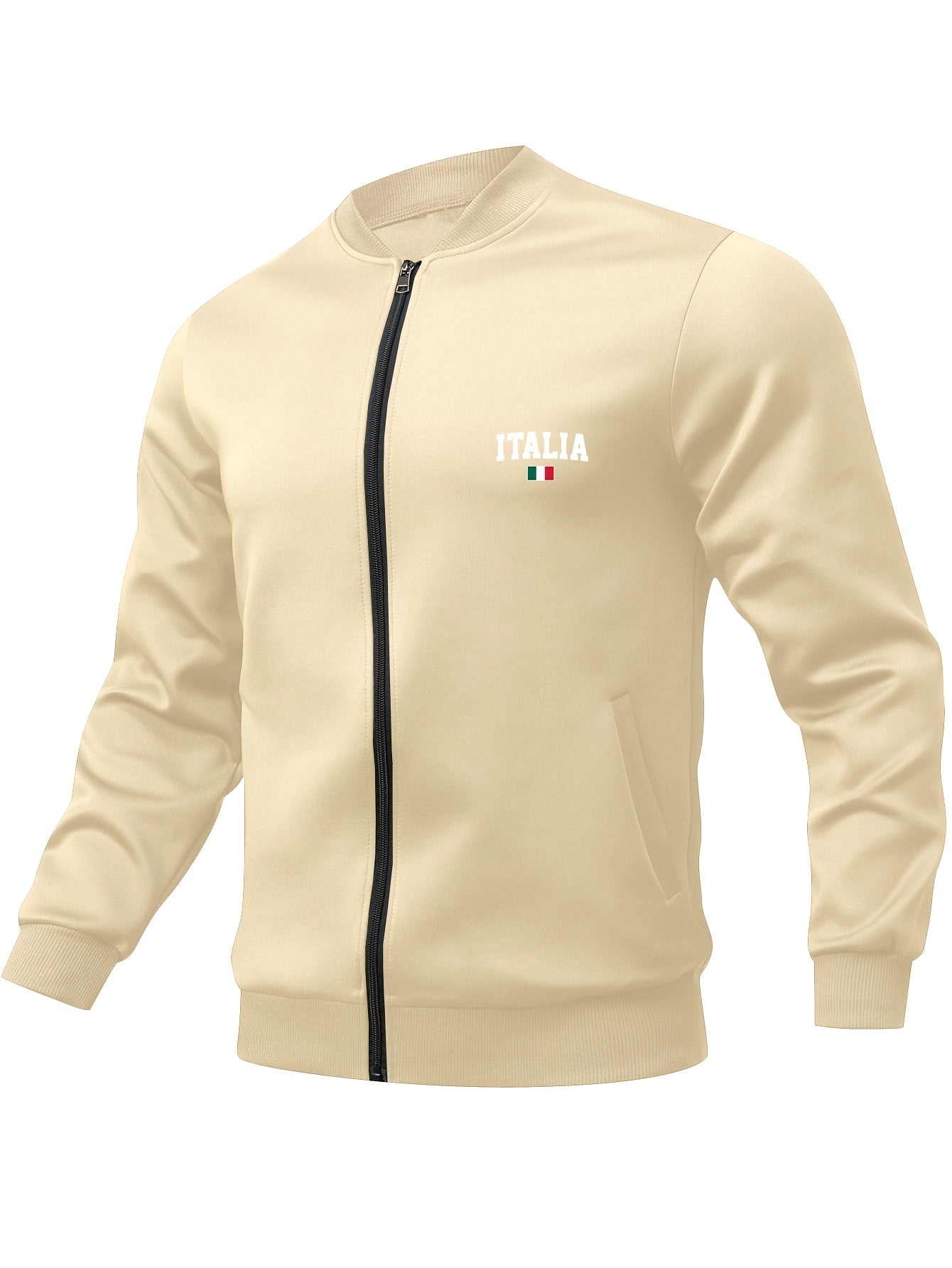Men's Red Italian Flag Print Bomber Jacket with Zipper Pockets Stand Collar for Fall Winter