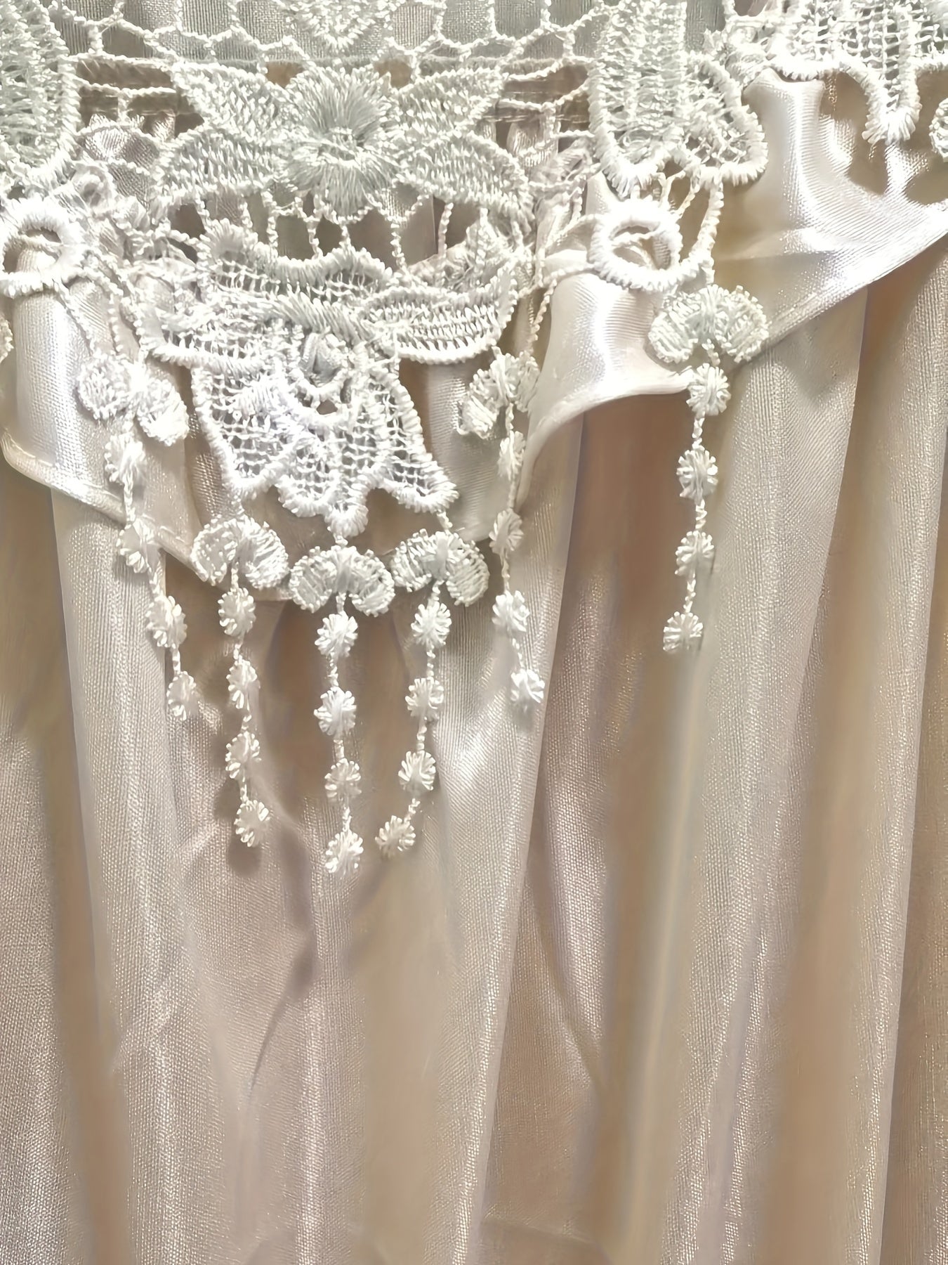 Women's Sleeveless Lace Nightdress Summer Elegant Solid Color Satin Feel Sleepwear