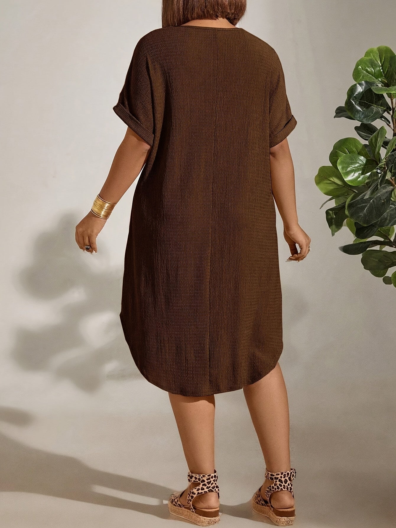 Plus Size Green Midi Dress with Batwing Sleeves V-Neck Textured Polyester for All Seasons
