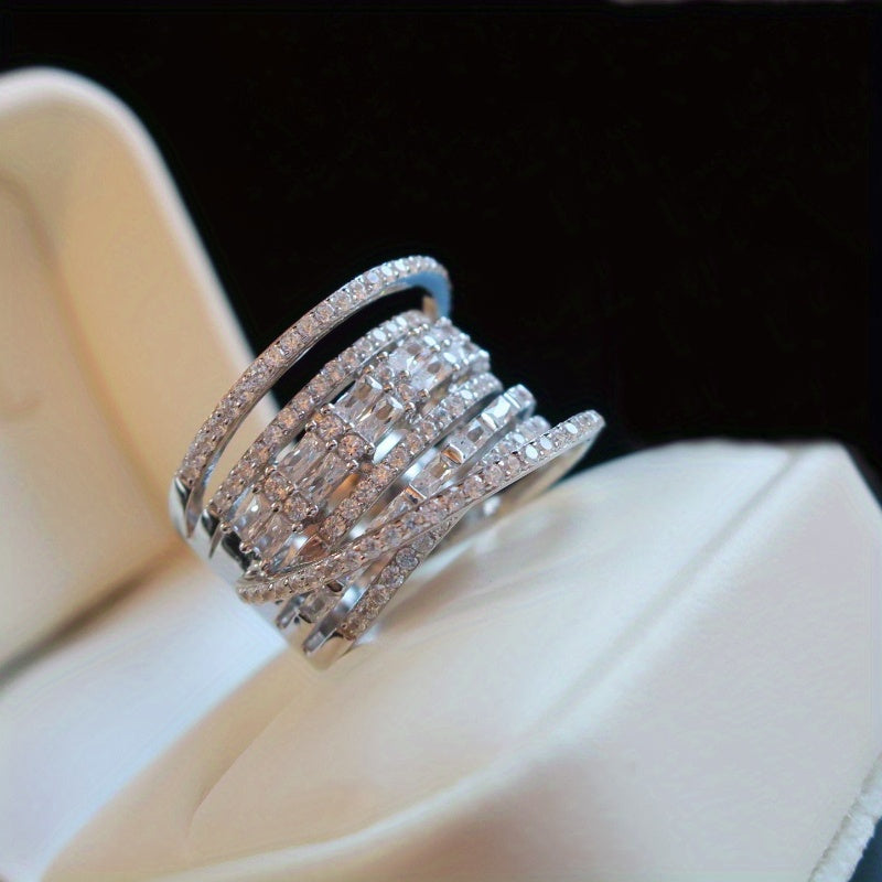Women's Square Cubic Zirconia Wedding Ring Copper Band for Daily Wear and Events