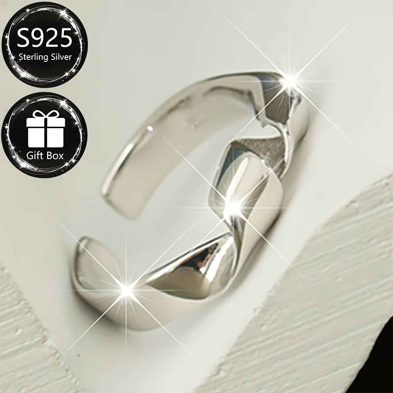 Sterling Silver Twist Ring Adjustable Fit Versatile Design for Parties or Daily Wear
