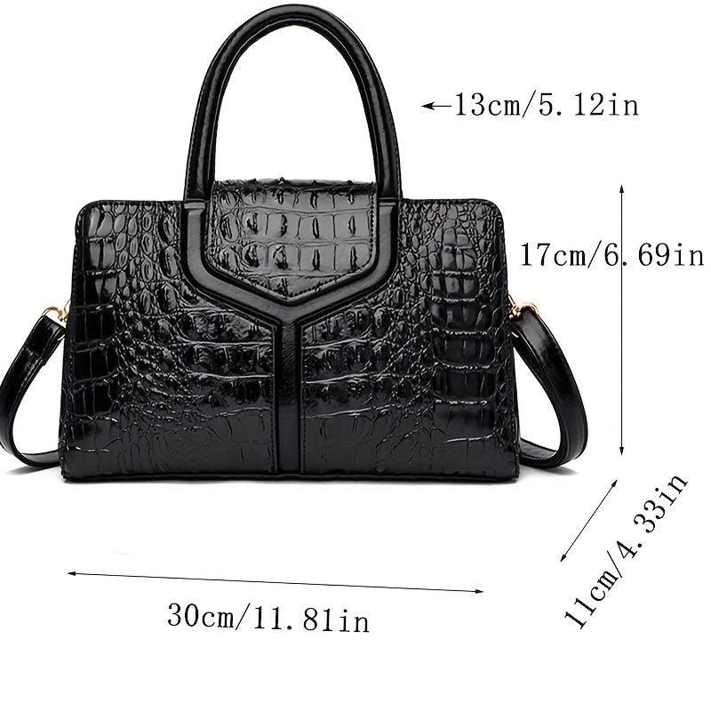 Women's Crocodile-Embossed Handbag Black Green Crossbody Shoulder PU Durable Stylish