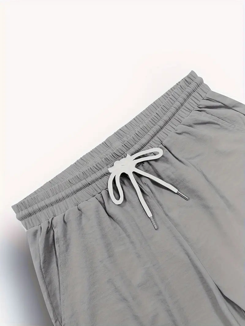 Plus Size Men's Summer Outfit Set Solid Shirt and Pants Casual Woven Polyester