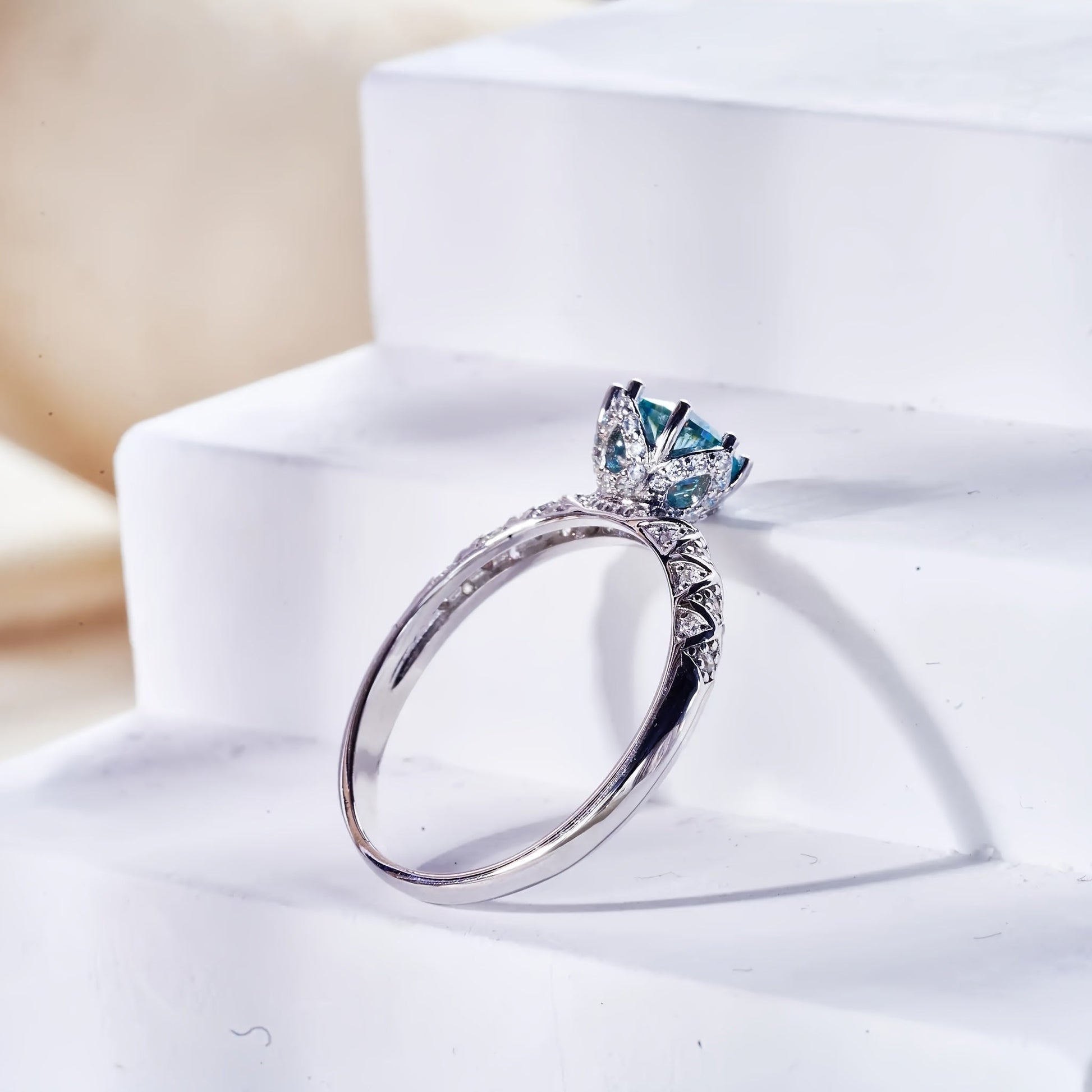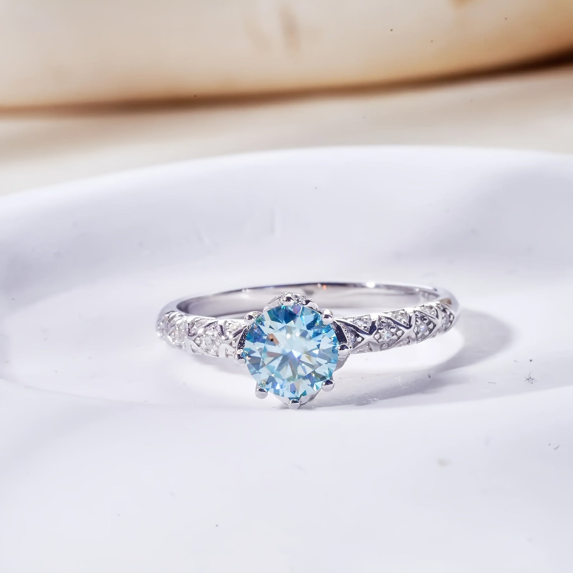 Sterling Silver Moissanite Promise Ring with Round Cut Gem for Wedding Anniversary Gift