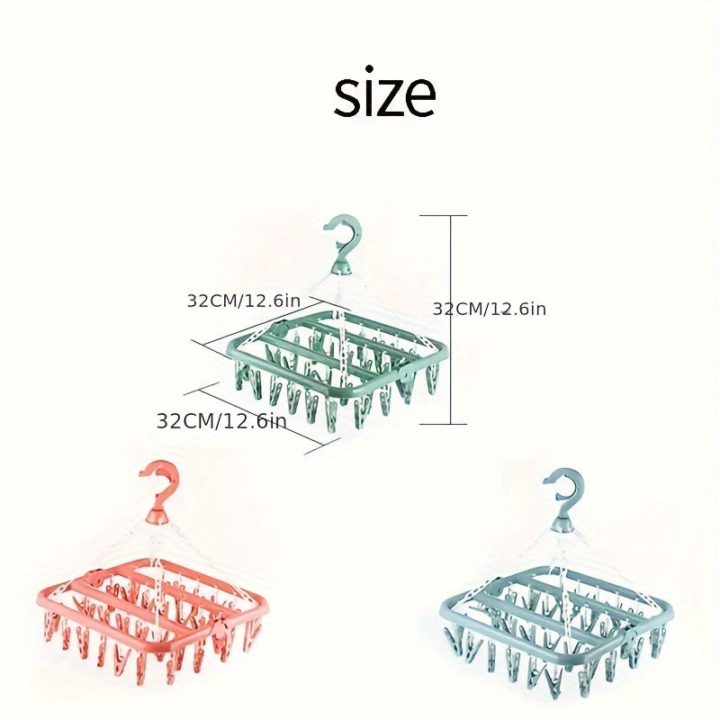 Foldable Clothes Organizer with 32 Clips for Socks and Underwear in Pink Blue Green