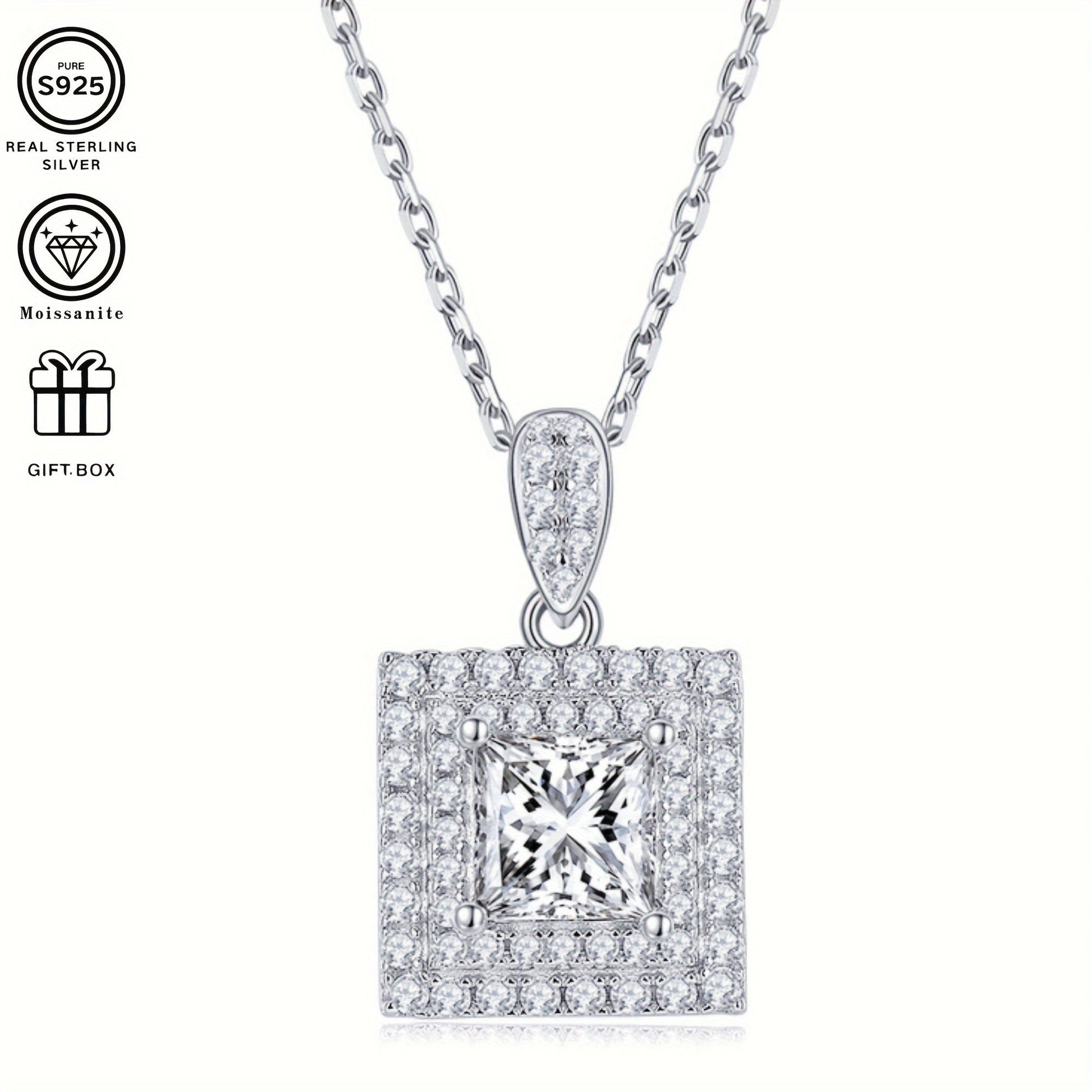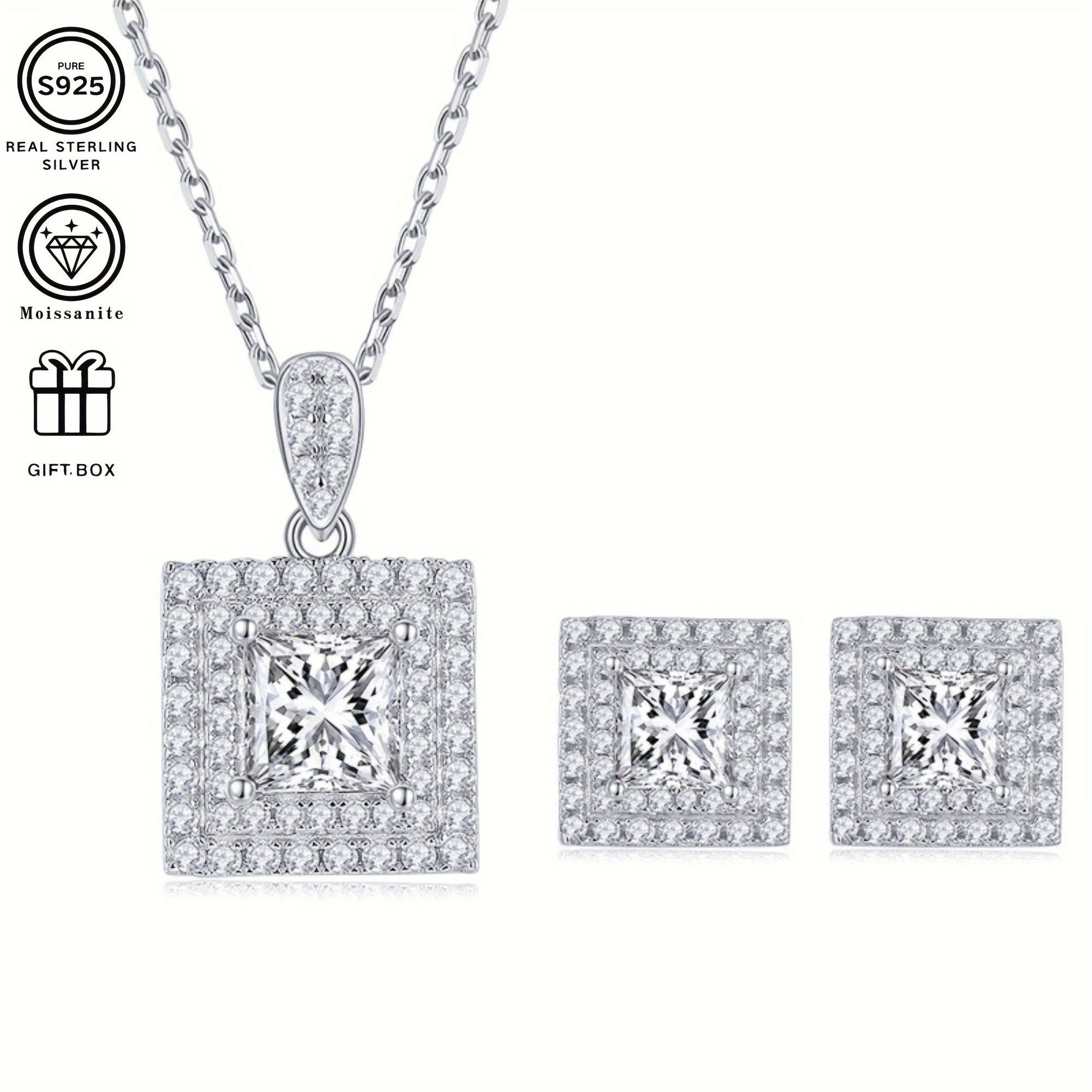 Women’s Silver Jewelry Set with Moissanite Necklace and Earrings 1ct and 1ct