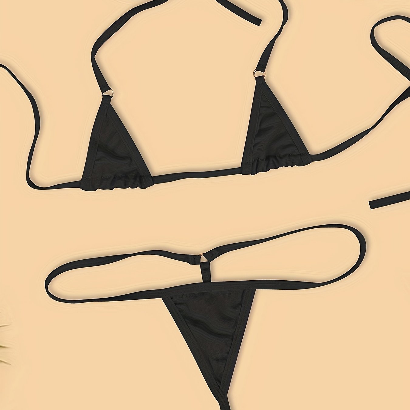 Women’s Backless Three-Point Lingerie Set Satin Adjustable Straps