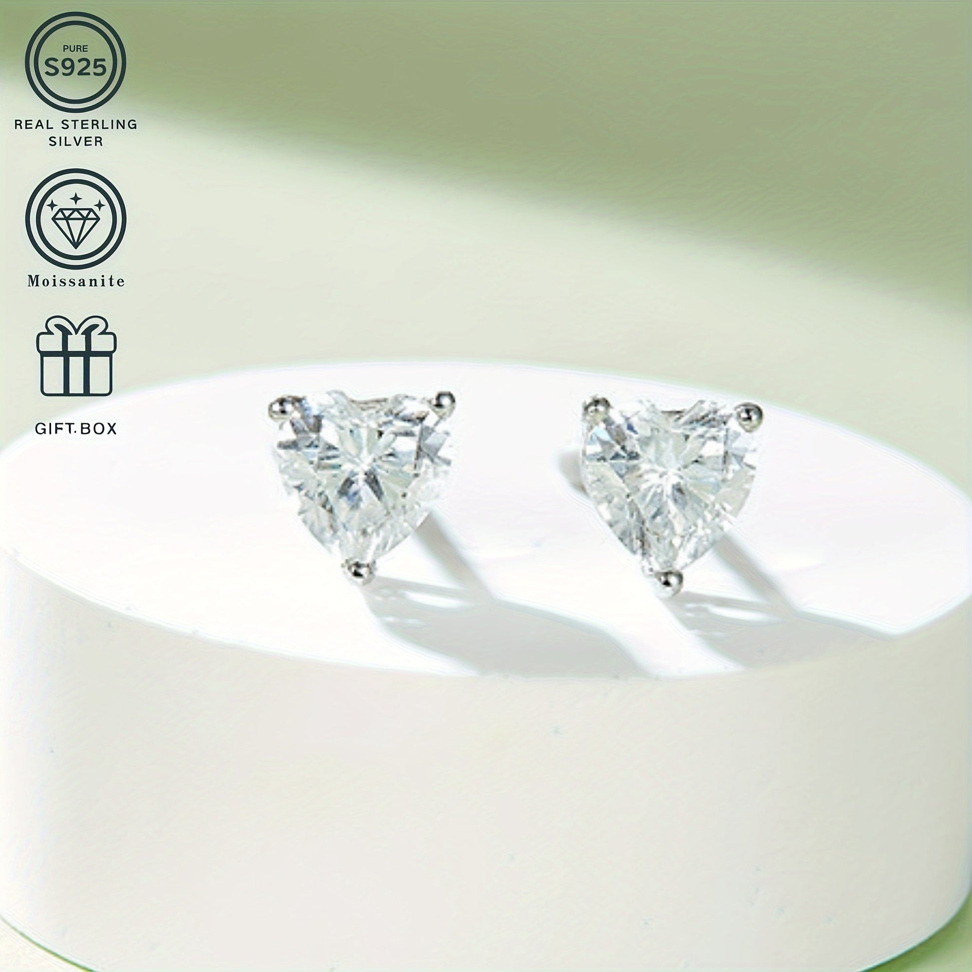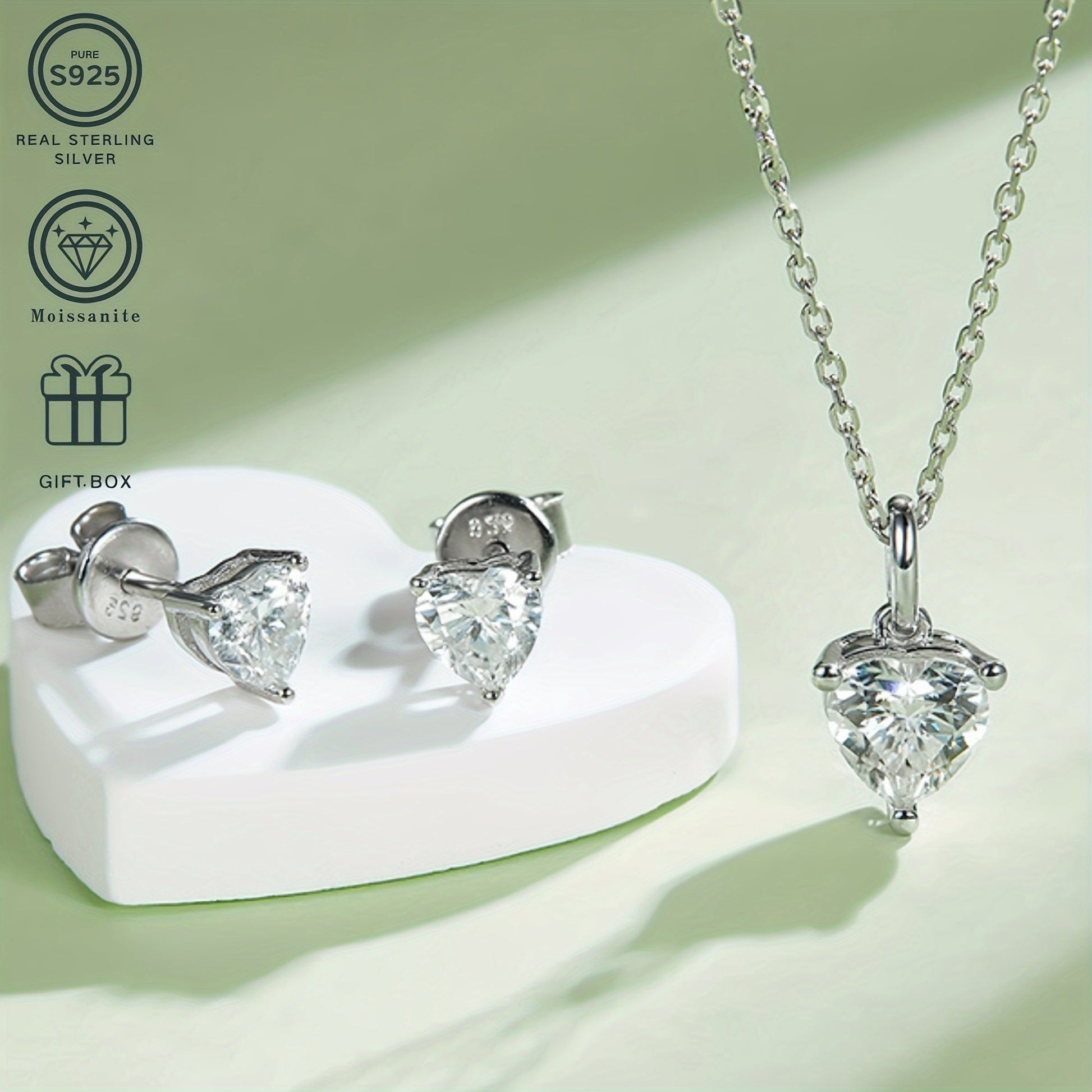925 Silver Plated Jewelry Set Heart-Shaped Moissanite Necklace Earrings Wedding Festival Gift Box