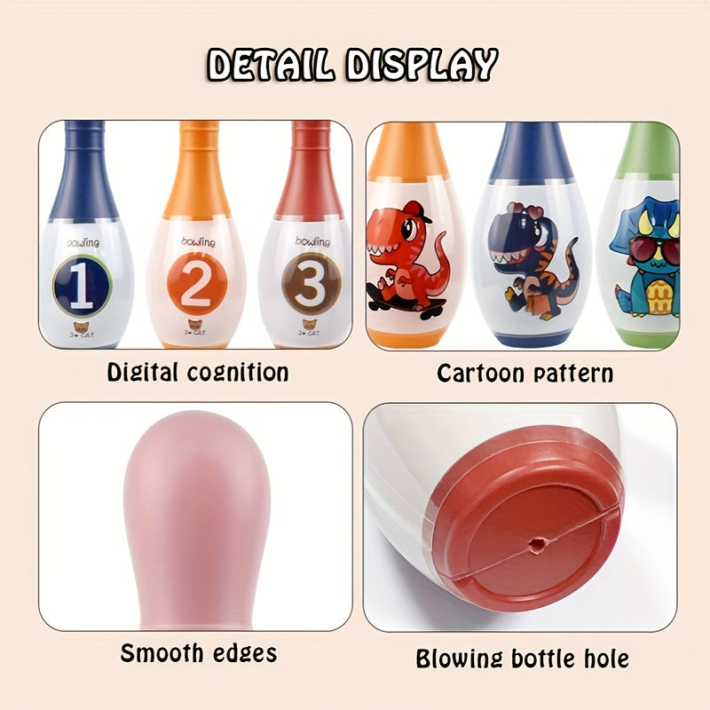 Toddler Bowling Set with 6 Pins and 2 Balls Educational Dinosaur Numbers Indoor Outdoor Play