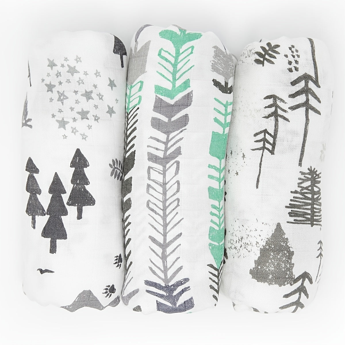Baby Swaddle Blankets Set of 3 Ultra-Soft Bamboo Muslin 119cm x 119cm for Newborns