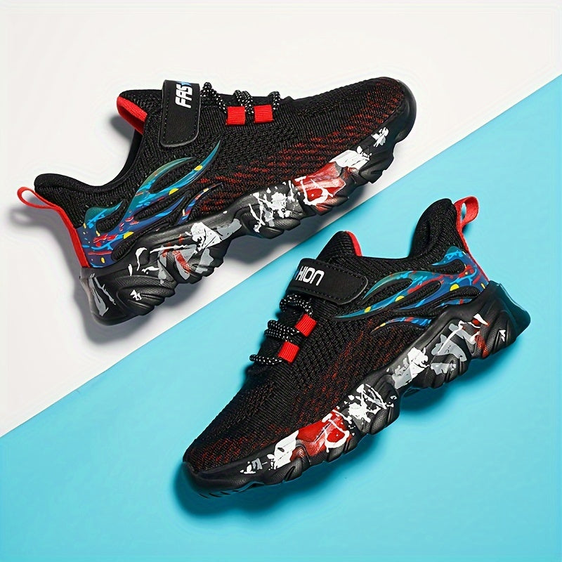 Kids Woven Knit Sneakers for Boys and Girls Casual Sports Mid Top Fabric Sole