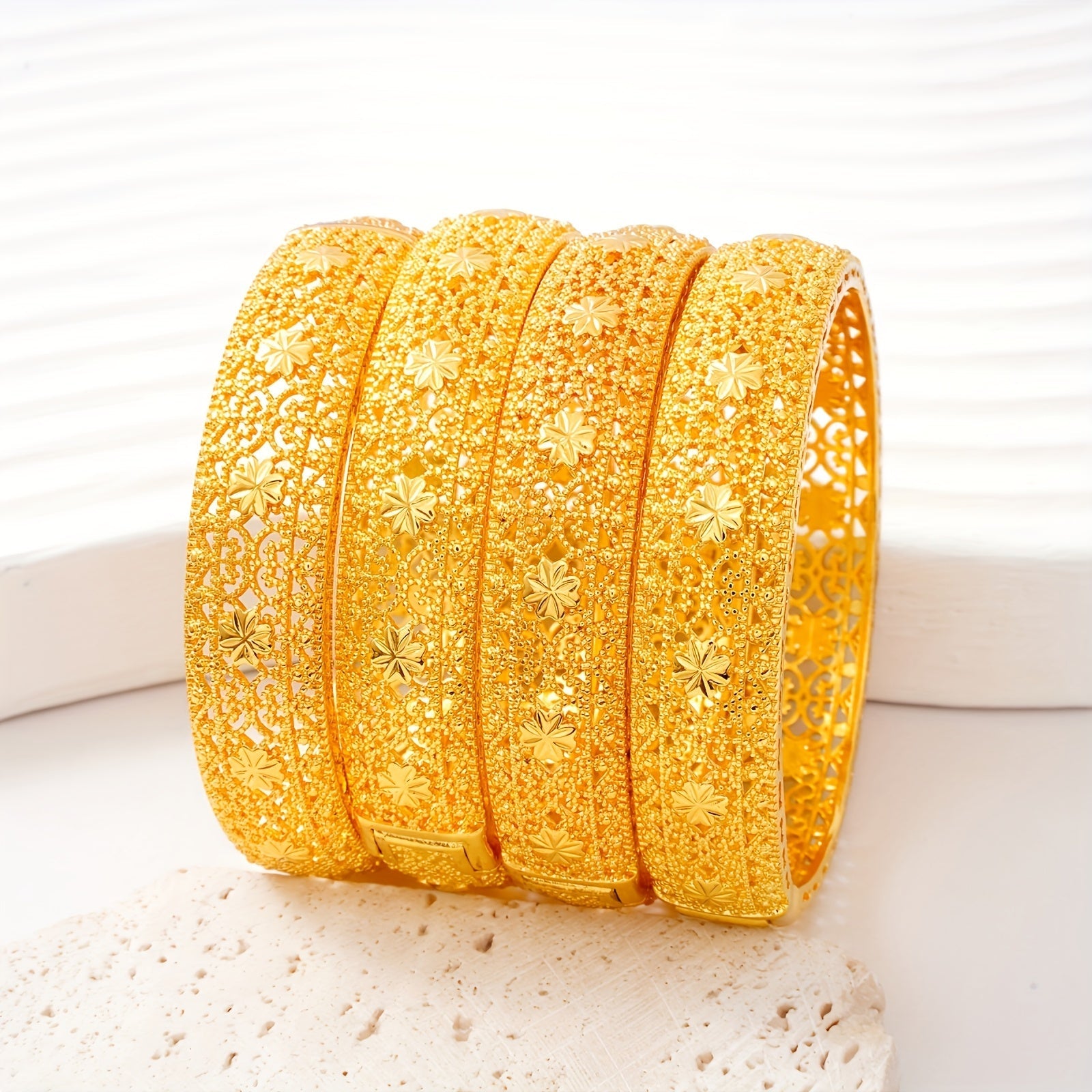 Gold Open Bracelet for Women with Elegant Hollow Design for Festivals and Weddings