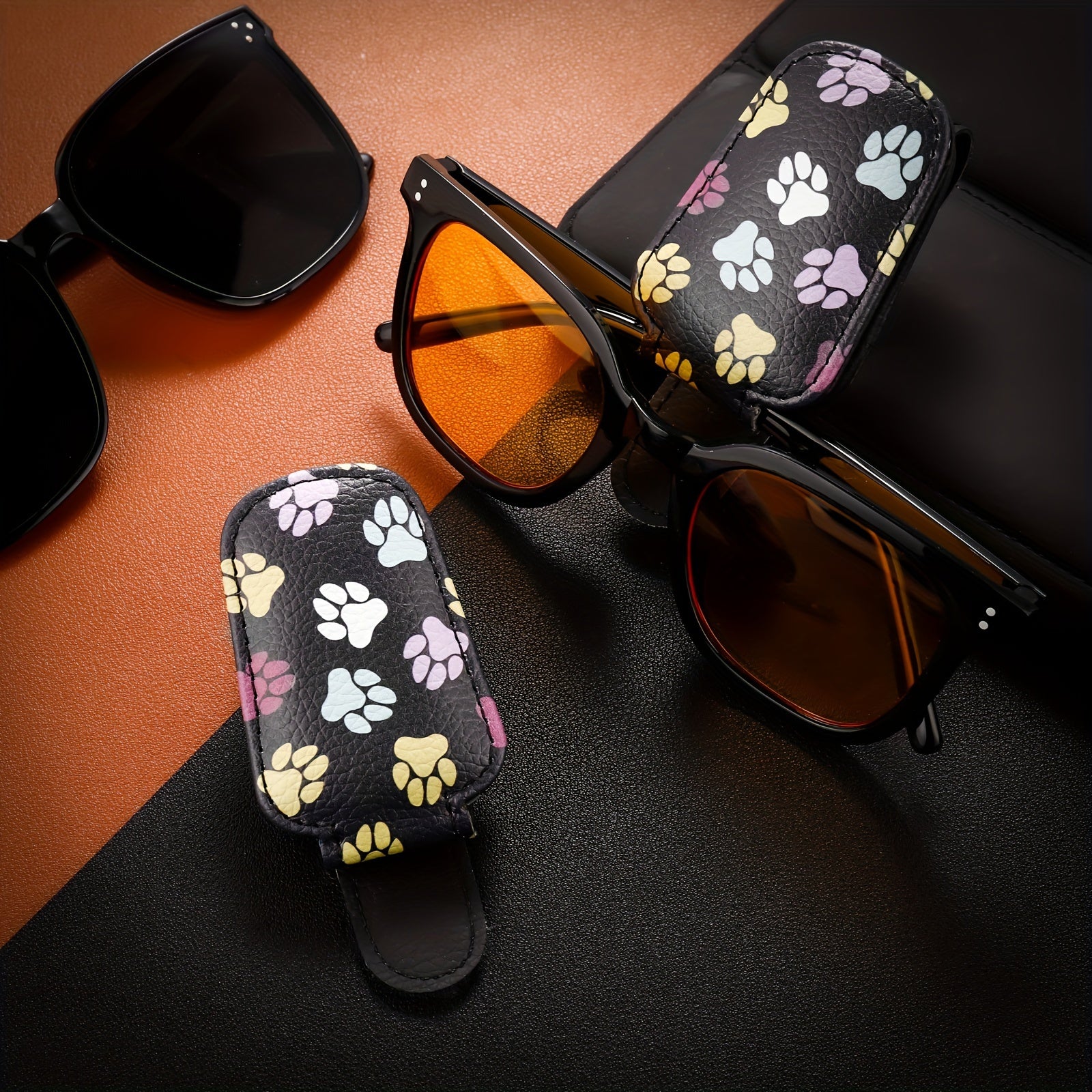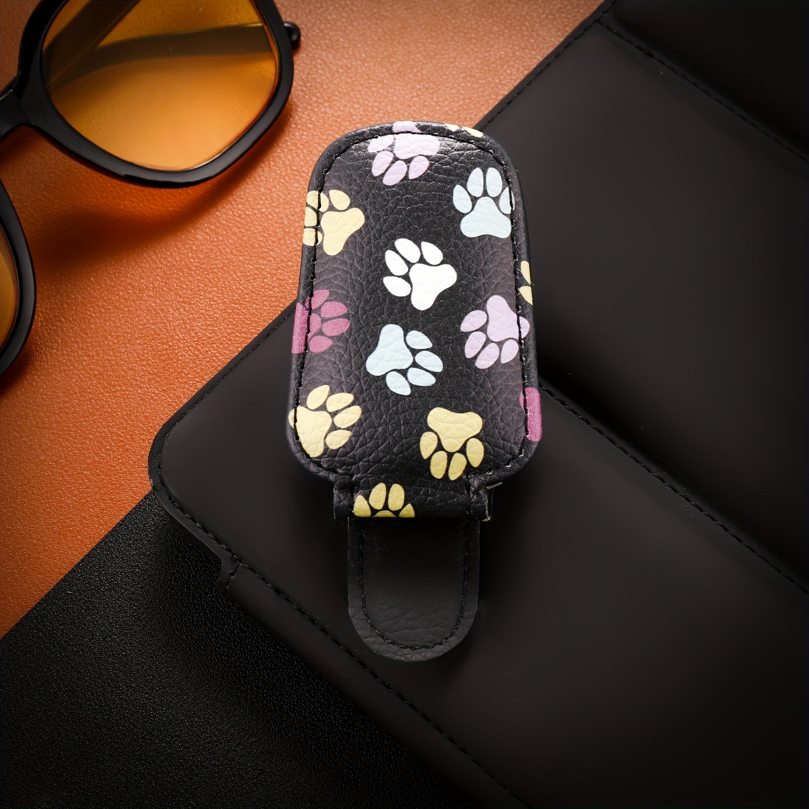 Unisex Faux Leather Magnetic Sunglasses Holder for Car Sun Visor