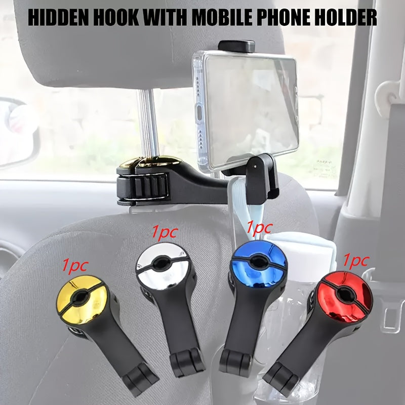 Universal Car Headrest Hook with Phone Holder PVC Durable 2-in-1 Organizer