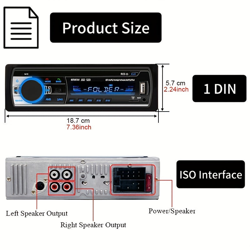 Universal Car Radio MP3 Player Wireless FM USB Aux 4 Inch Color Display Voice Navigation