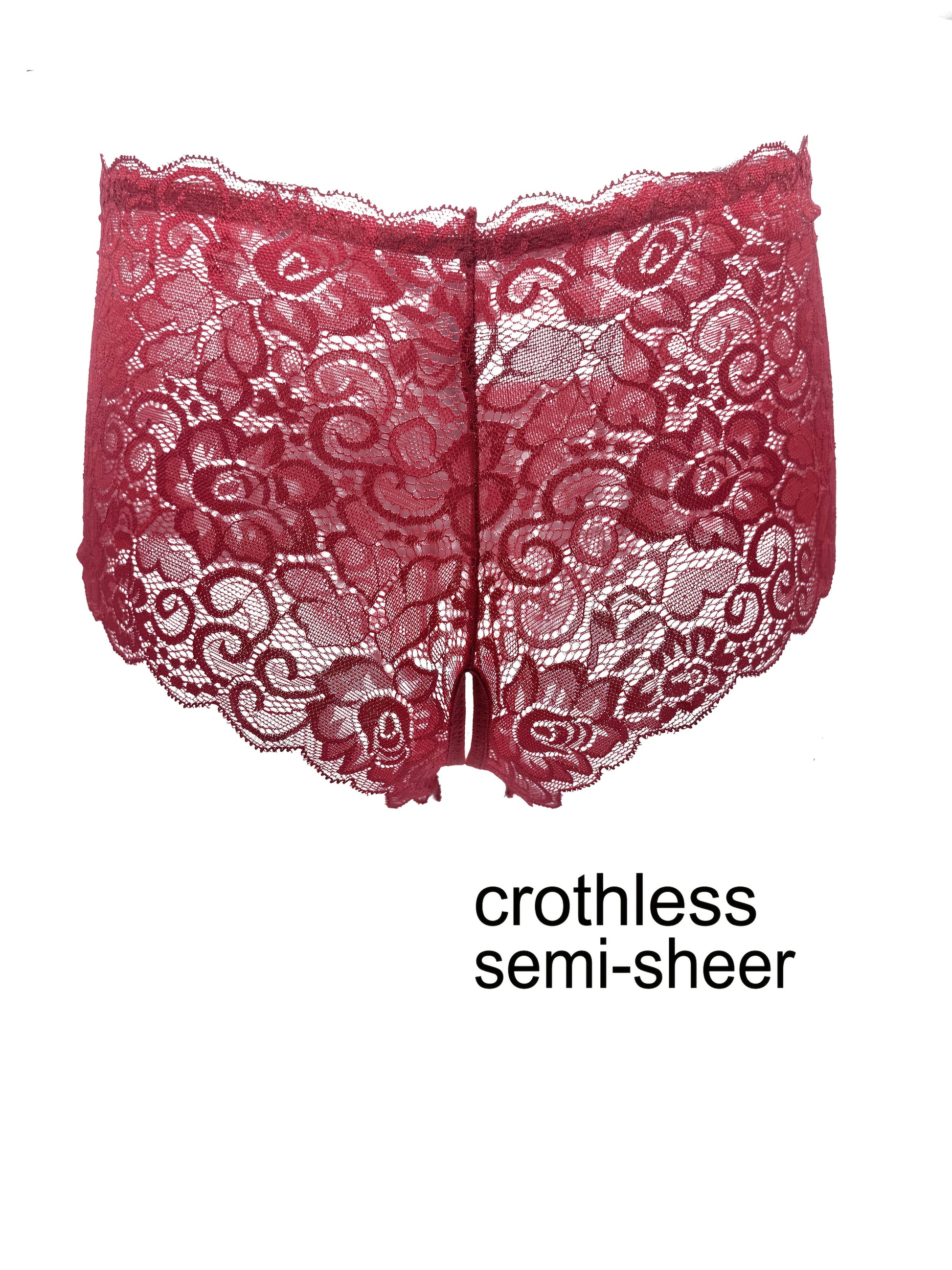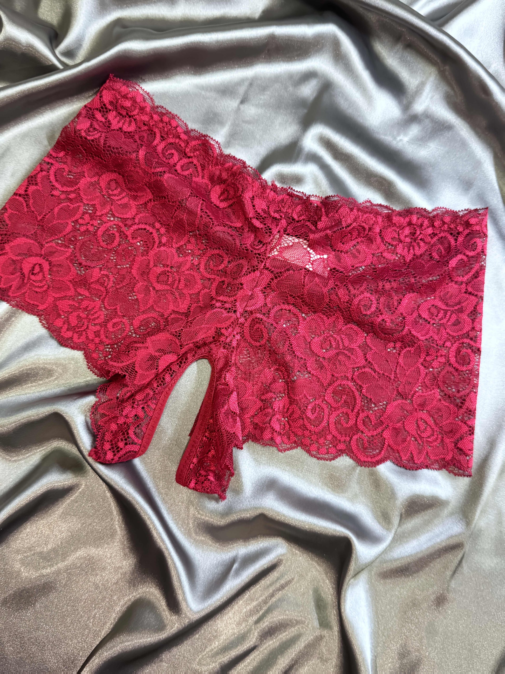 Women's Red Lace Open-Crotch Panties with Bow Details for Valentine's Day