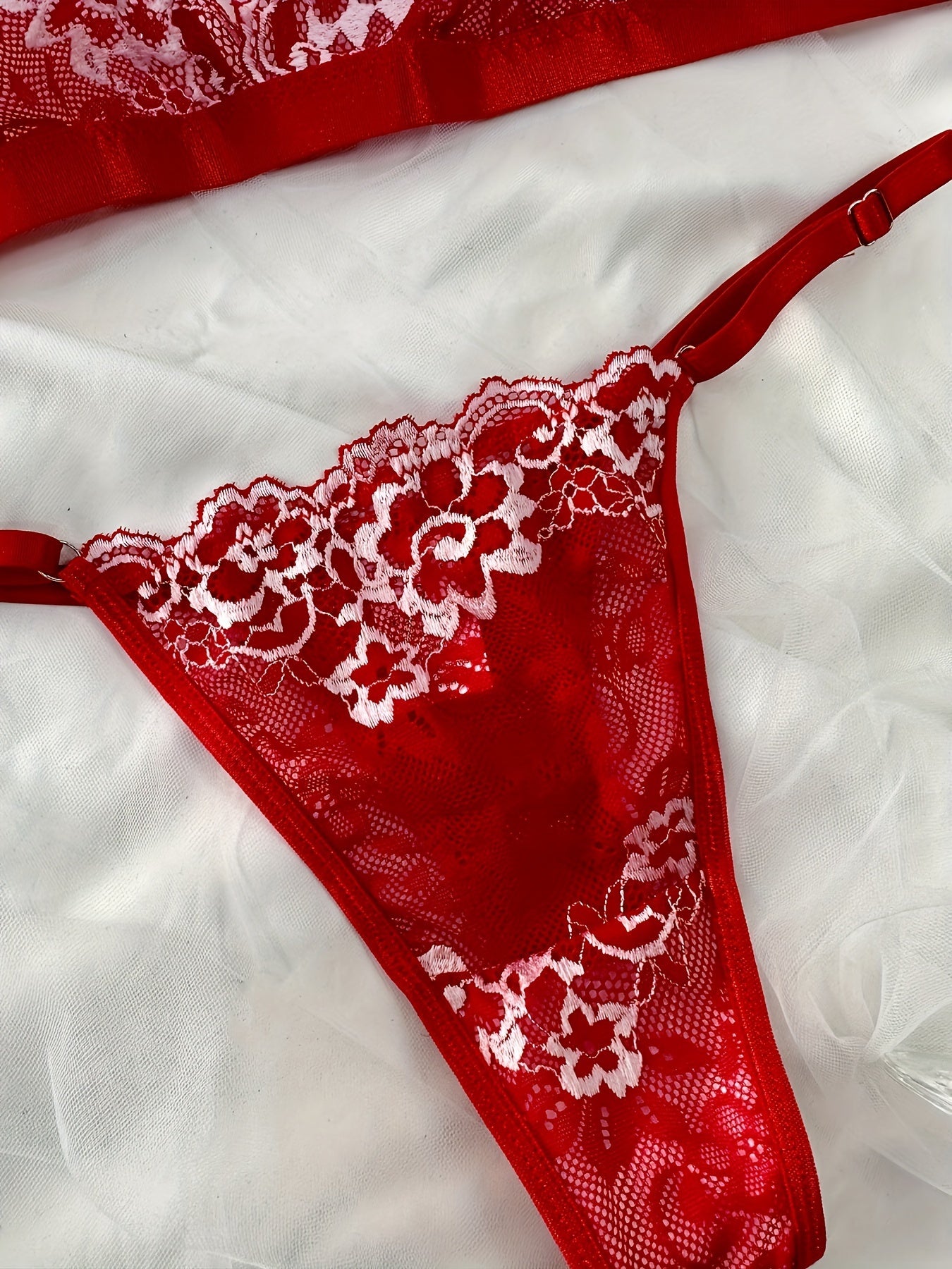 Women's Floral Lace Lingerie Set with Triangle Cups and Panties
