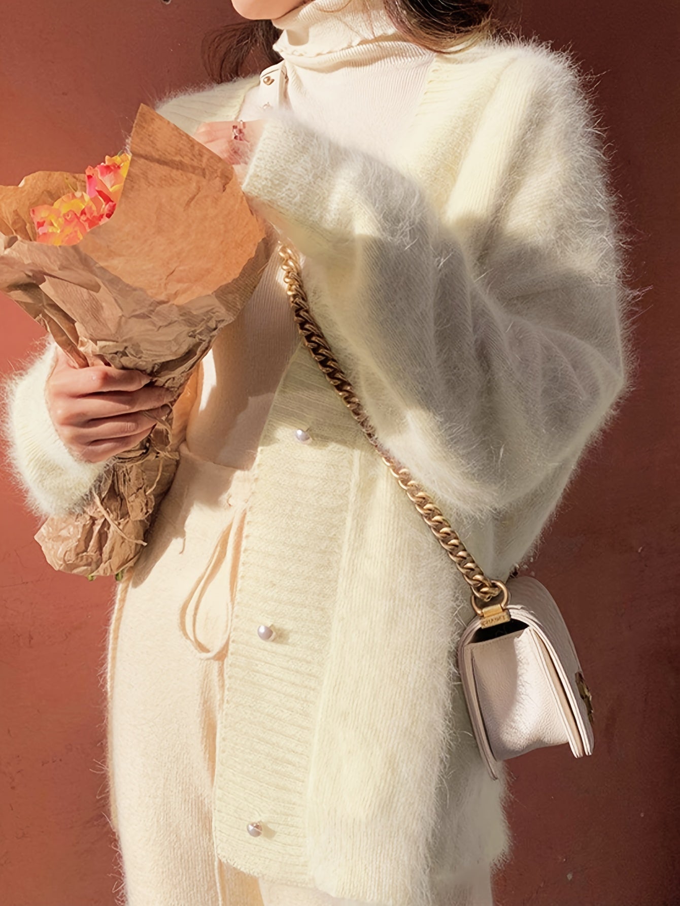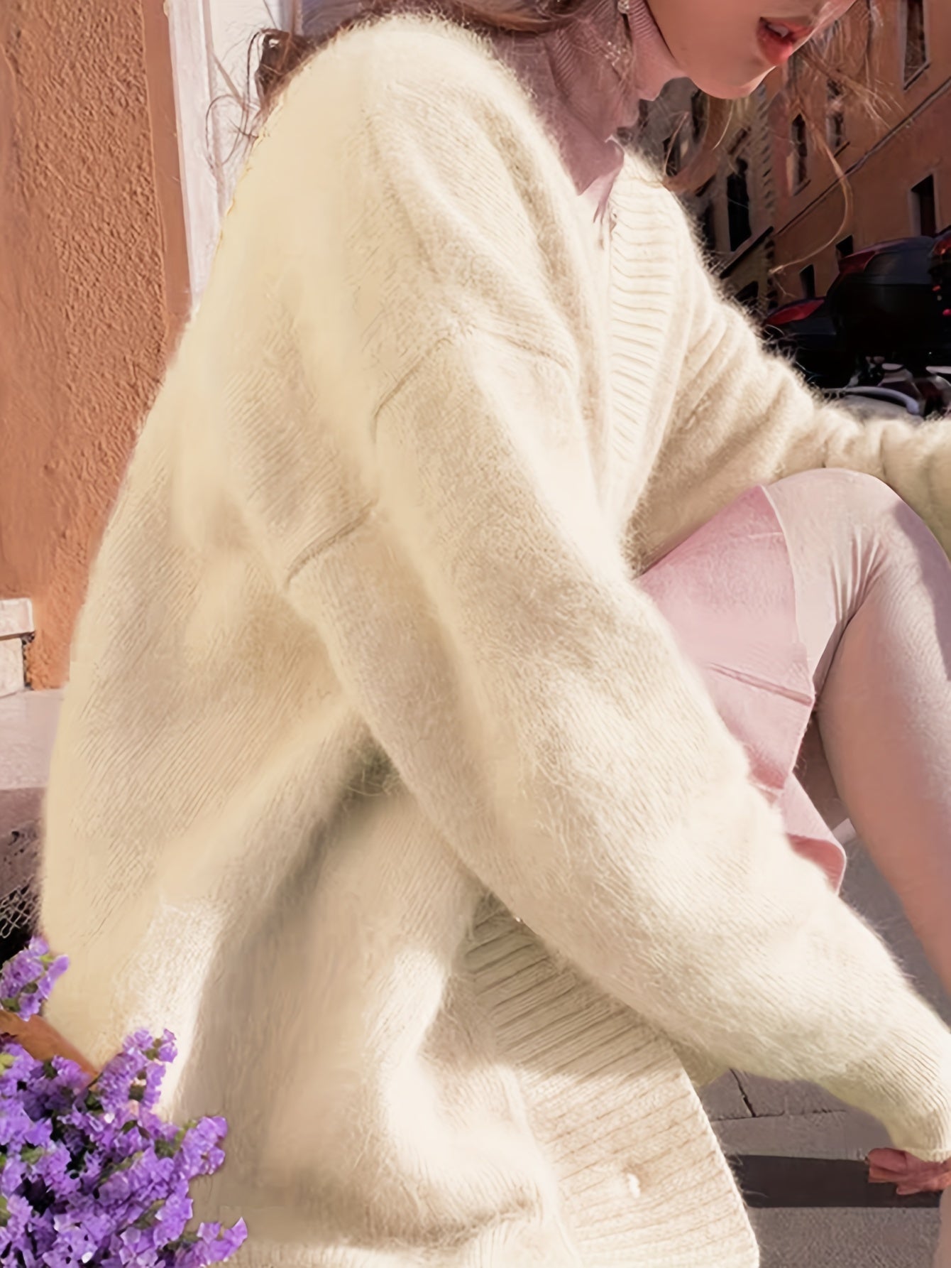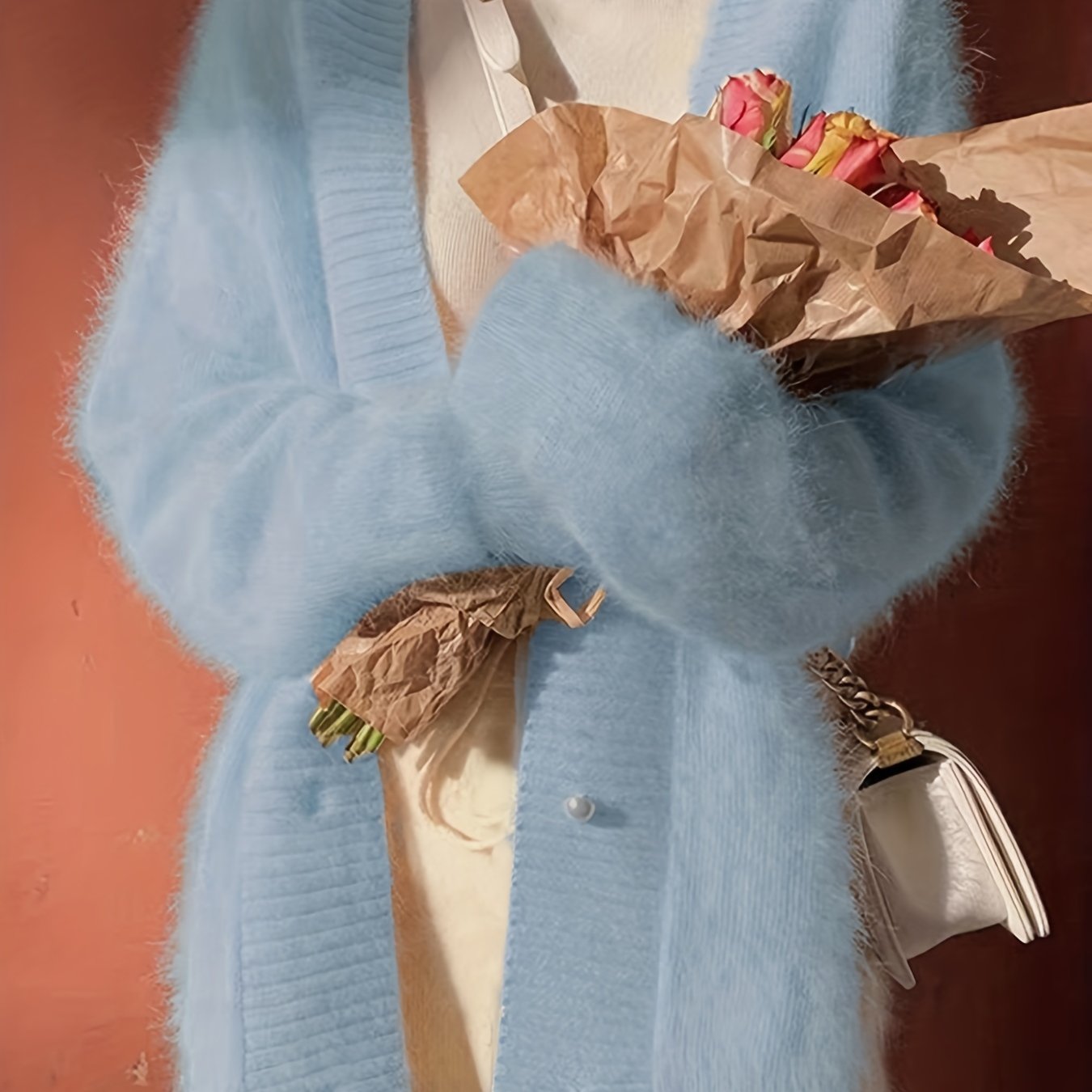Women's V-Neck Cardigan Fall Winter Long Sleeve Solid Knit Micro Elasticity