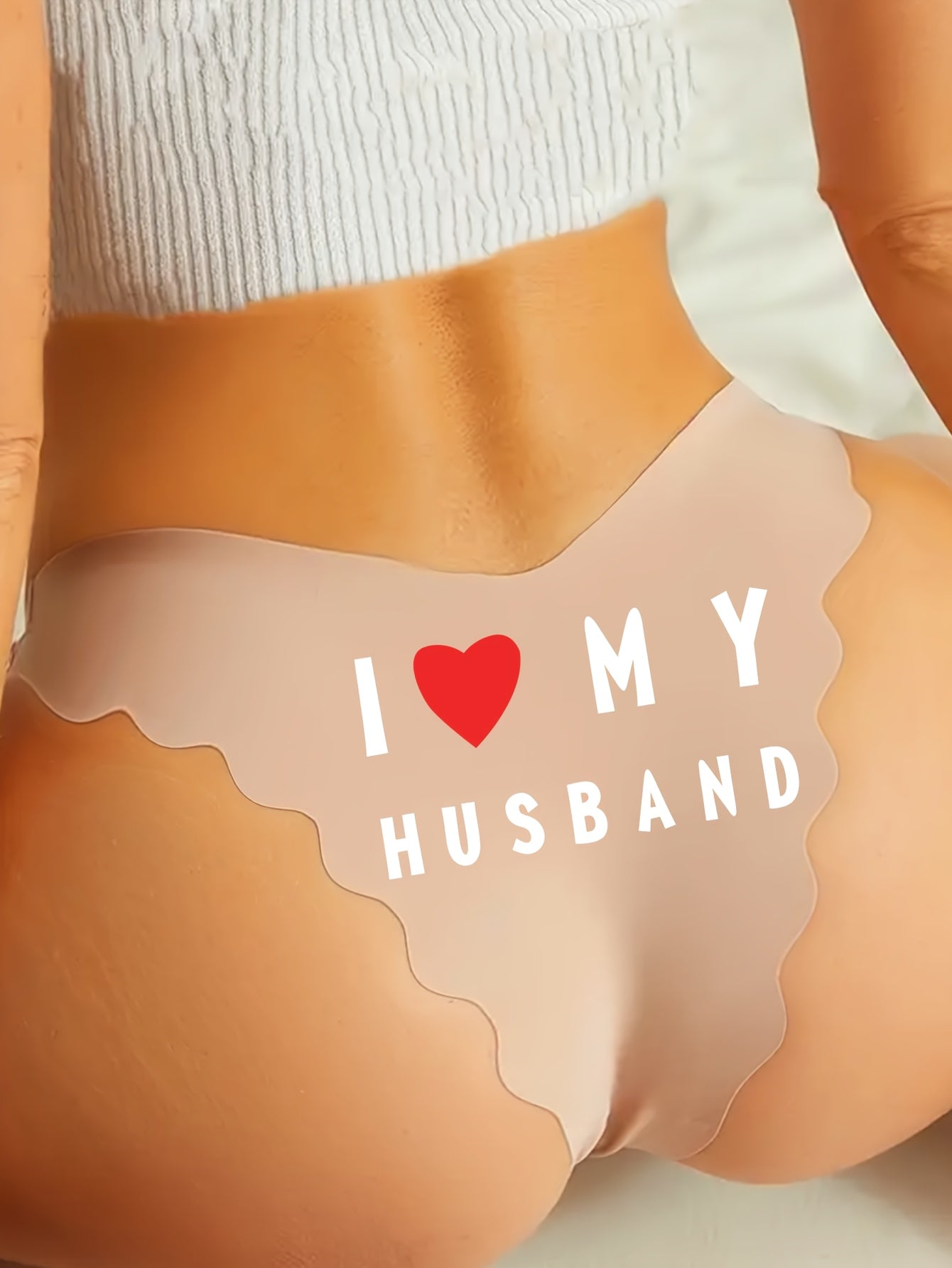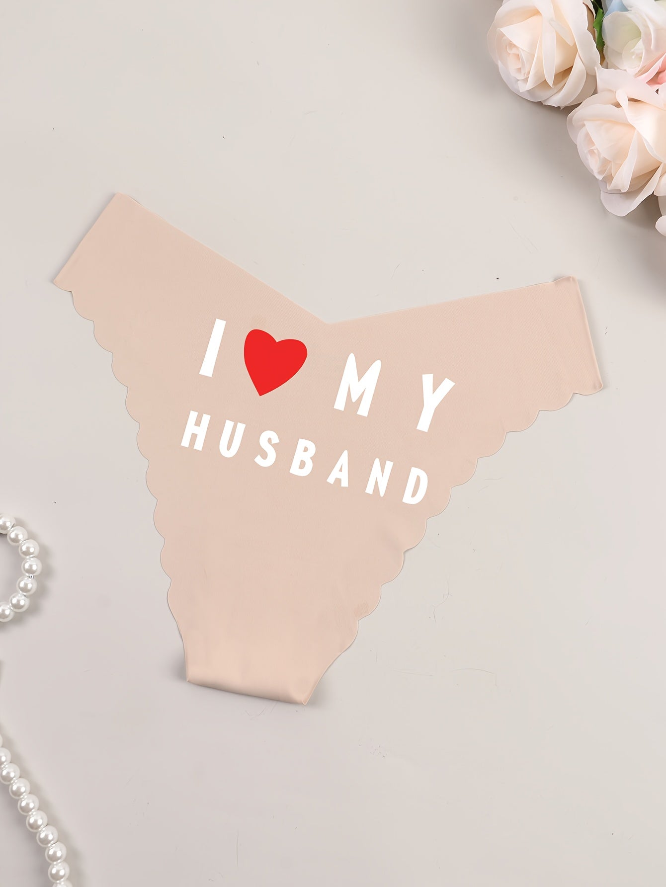 Women's Valentine’s Day Lingerie Triangle Panties with Letter Print and Wave Pattern