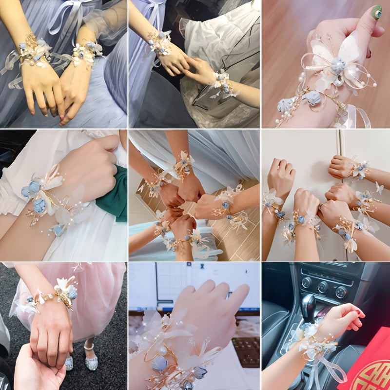 Wedding Wrist Corsages for Brides and Bridesmaids Fabric Flower Ribbon Bracelets