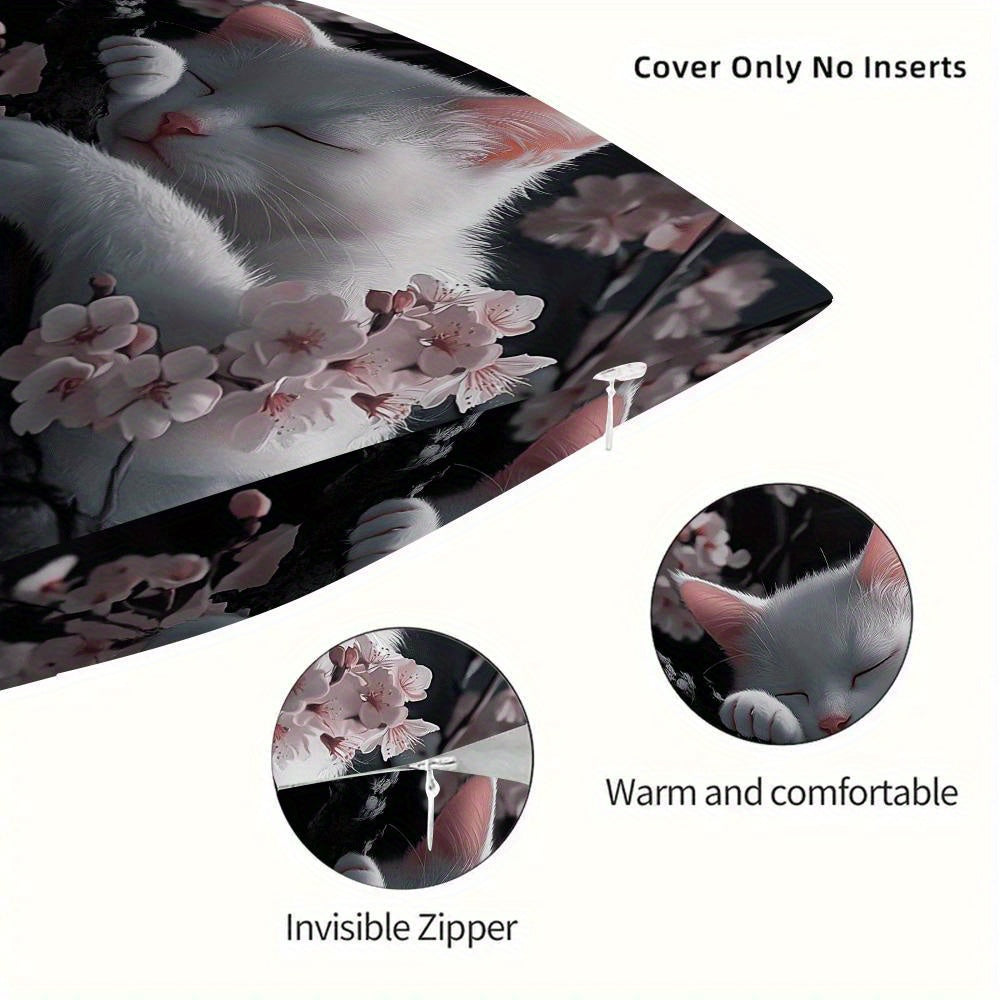 White Cat and Cherry Blossom Cushion Cover 45cm Machine Washable Sofa Bedroom Decor