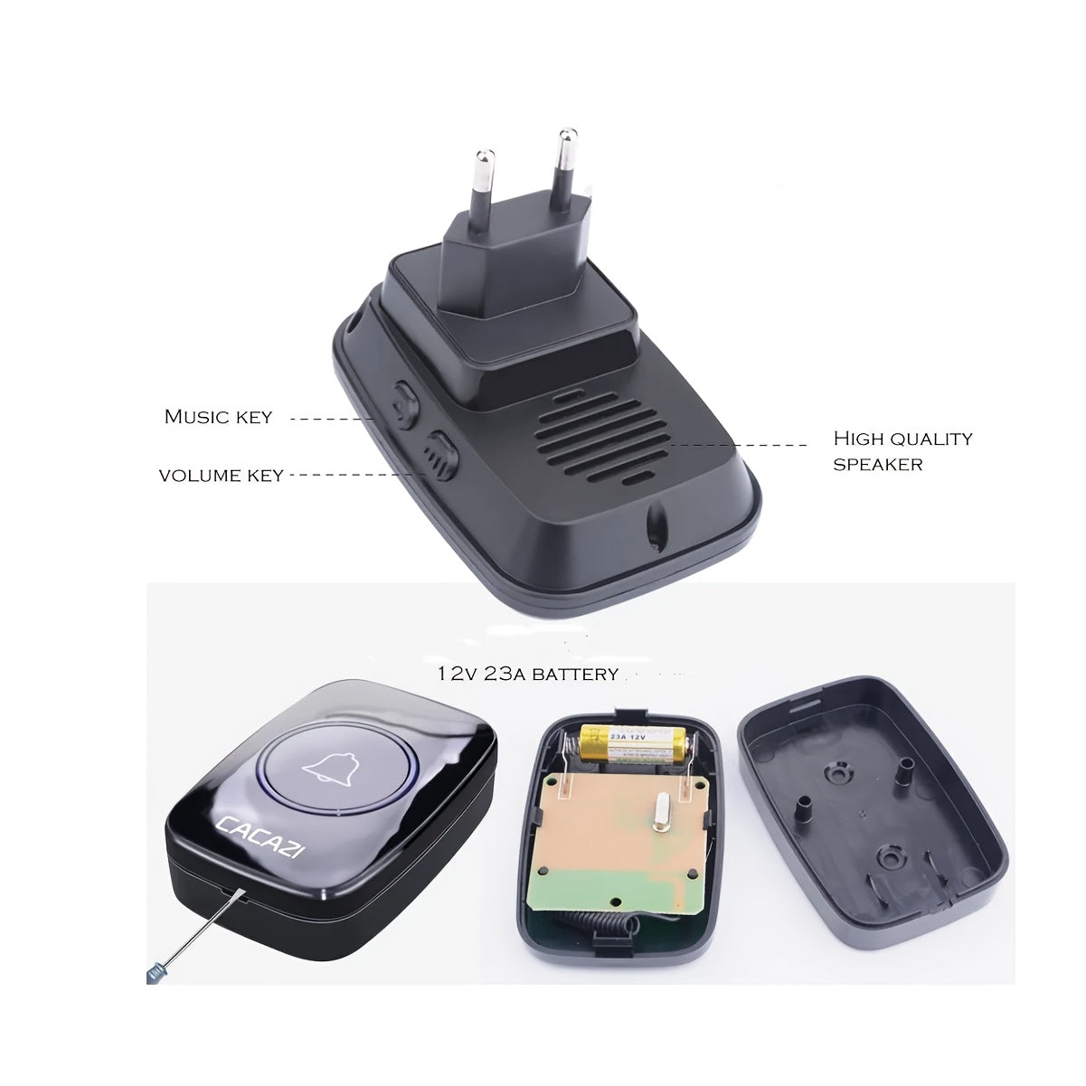 Wireless Home Doorbell with Plug-in Receiver 304.8m Range Adjustable 110dB Volume 60 Melodies LED Flashing Light European Plug