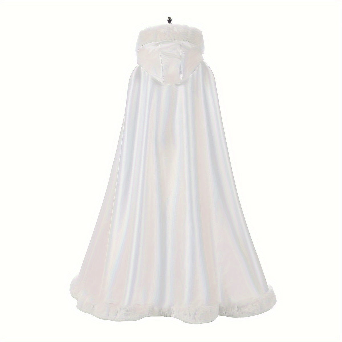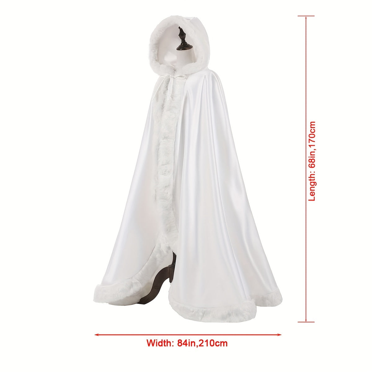Women Girls Faux Fur Satin Cape Hood Windproof Warm Stylish Clothing Accessory