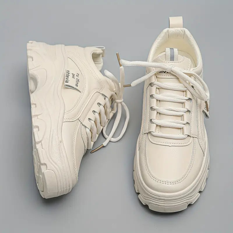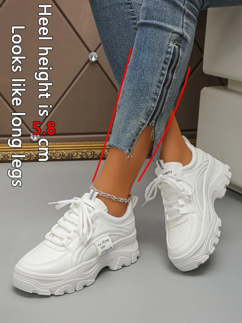 Women Chunky Sneakers Lightweight Breathable Casual Shoes White Low Top