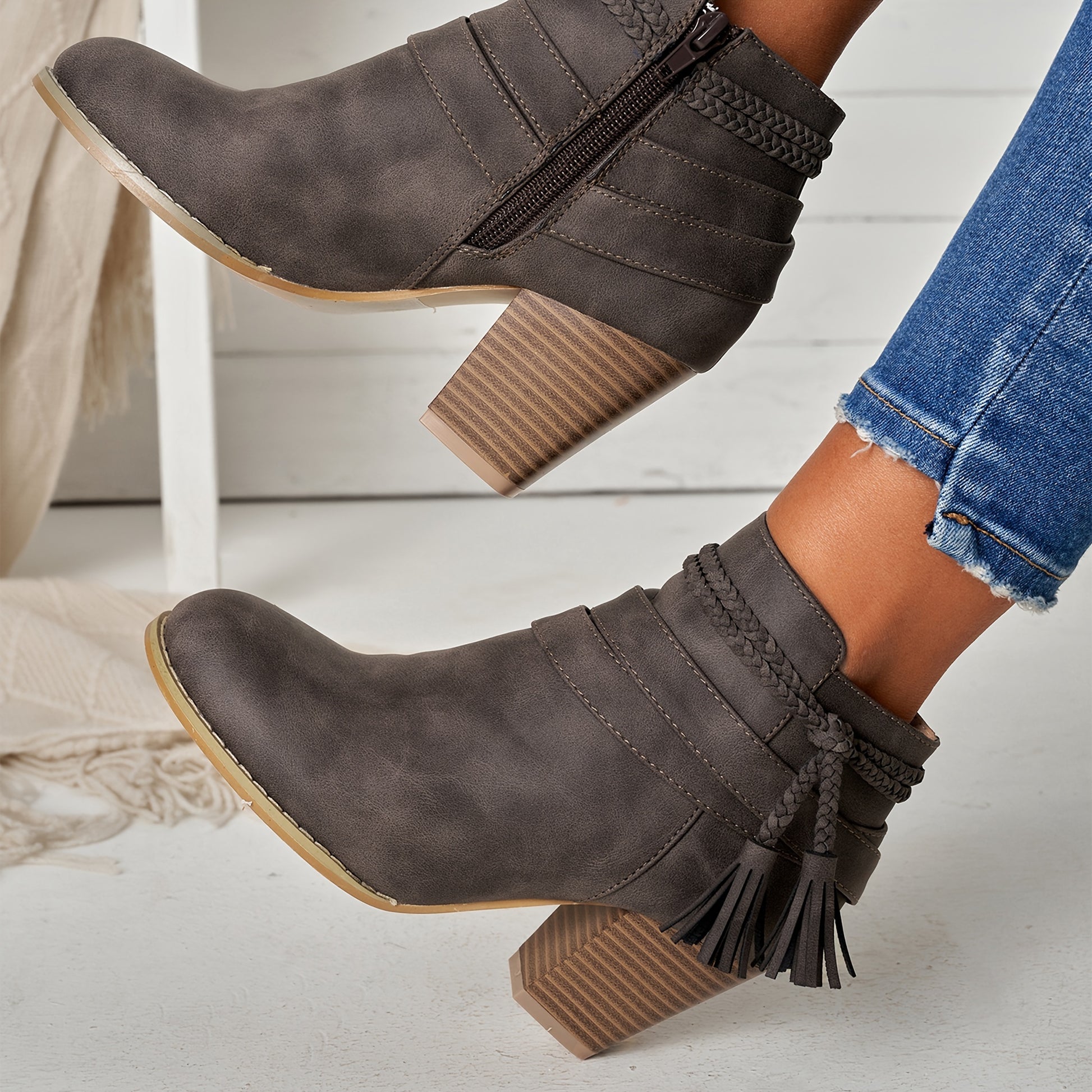 Women's Black Ankle Boots With Tassel Decor Chunky Heel Cold Weather