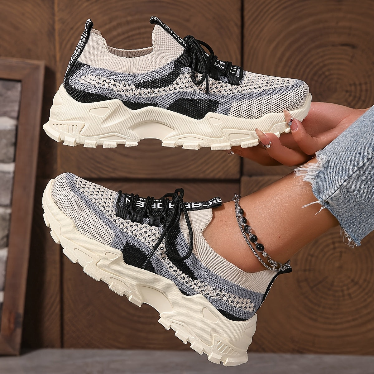 Women's Breathable Knit Low-Top Running Sneakers Lightweight Casual Shoes