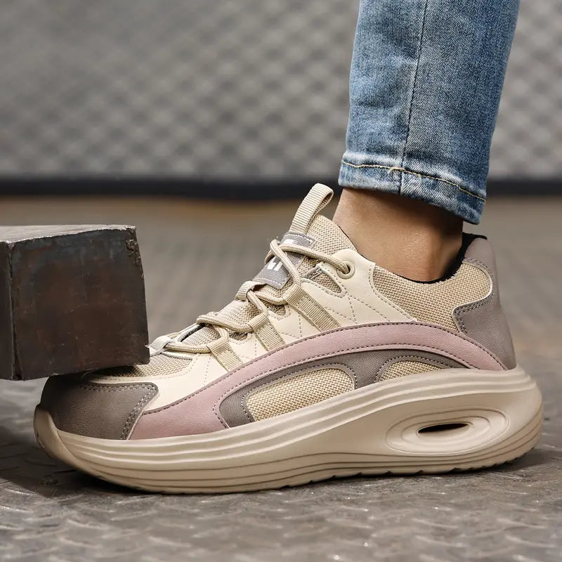 Women's Breathable Mesh Sneakers Lightweight Slip-Resistant Steel Toe Casual Shoes