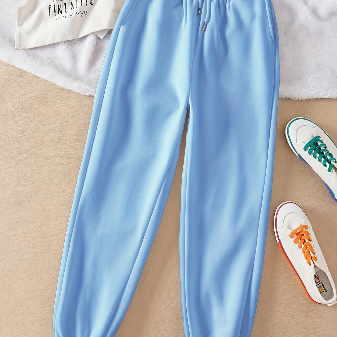 Women's Solid Color Casual Jogger Pants with Elastic Waistband and Drawstring